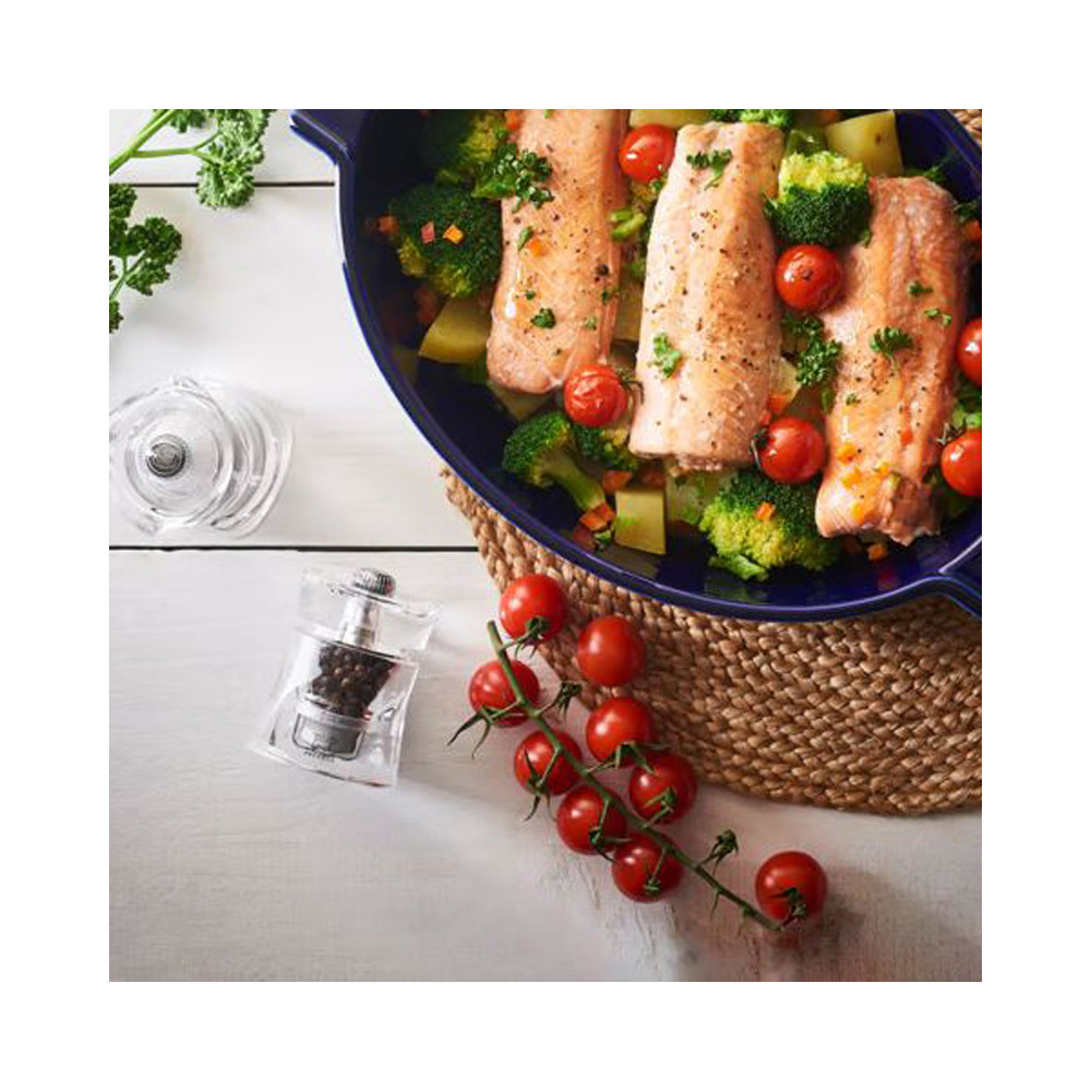 La collection BALTIC, en acrylique, est fabriquée en France par Peugeot Saveurs. Vous retrouverez un moulin à sel SEC et un moulin à poivre. Un moulin élégant, totalement transparent, qui laisse voir le sel ou le poivre que vous y mettez à l'intérieur.