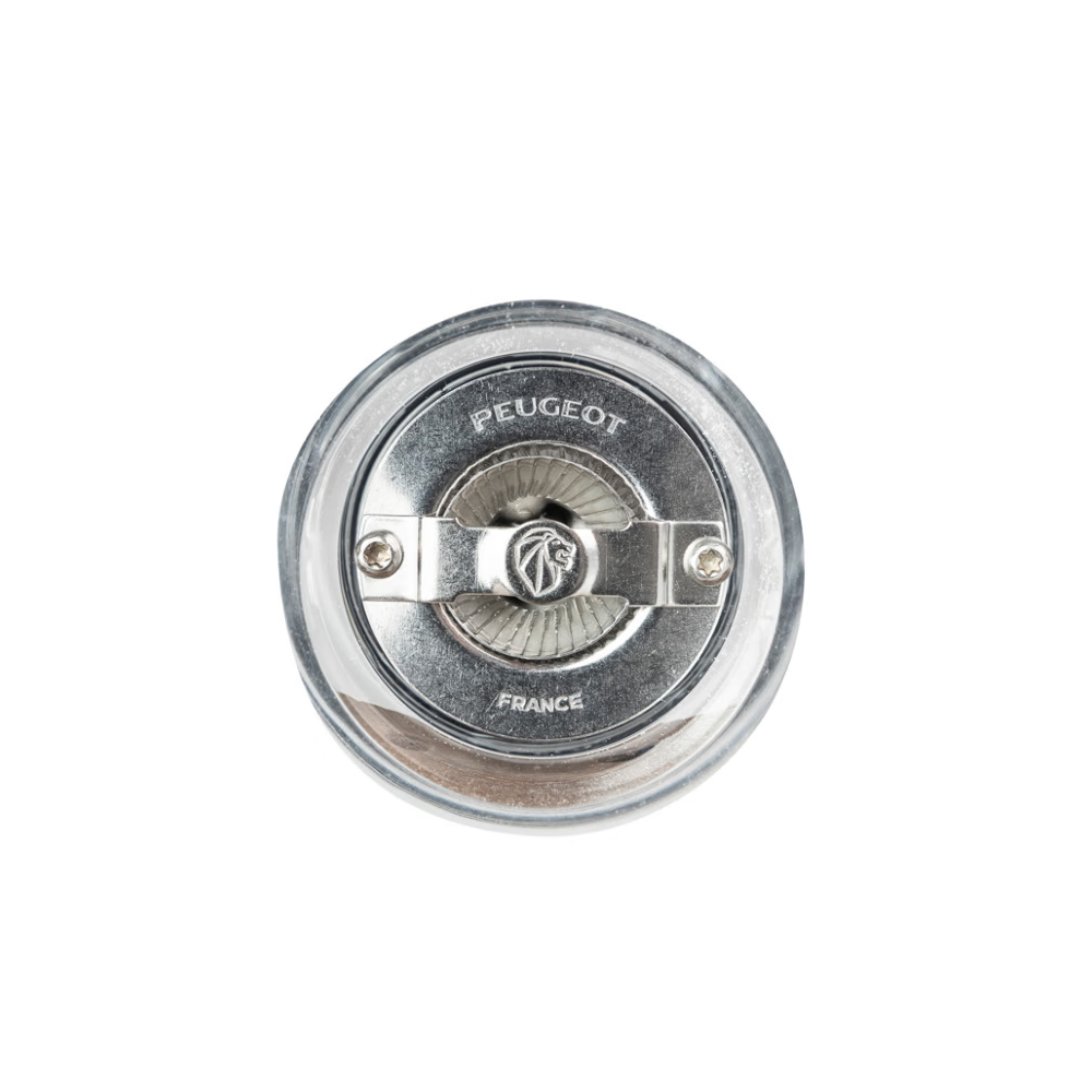 Moulin à sel SEC, modèle OSLO en acrylique et en acier inoxydable, fabriqué en FRANCE par PEUGEOT SAVEURS.DIMENSIONS : - hauteur : 14cmBouton de réglage de mouture : Plus le bouton est serré, plus la mouture est fine (et inversement). Pour moudre les cristaux de sel sec (sel gemme) d’une taille inférieure ou égale à 4mm.