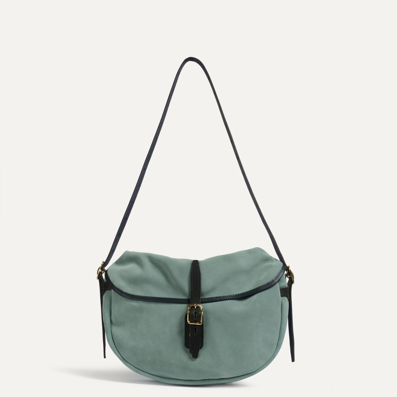 Besace demie-lune Margot Marron Rubis en cuir suédé. Sac à main Made in France, féminin et poétique, inspiré de la musette du pêcheur.