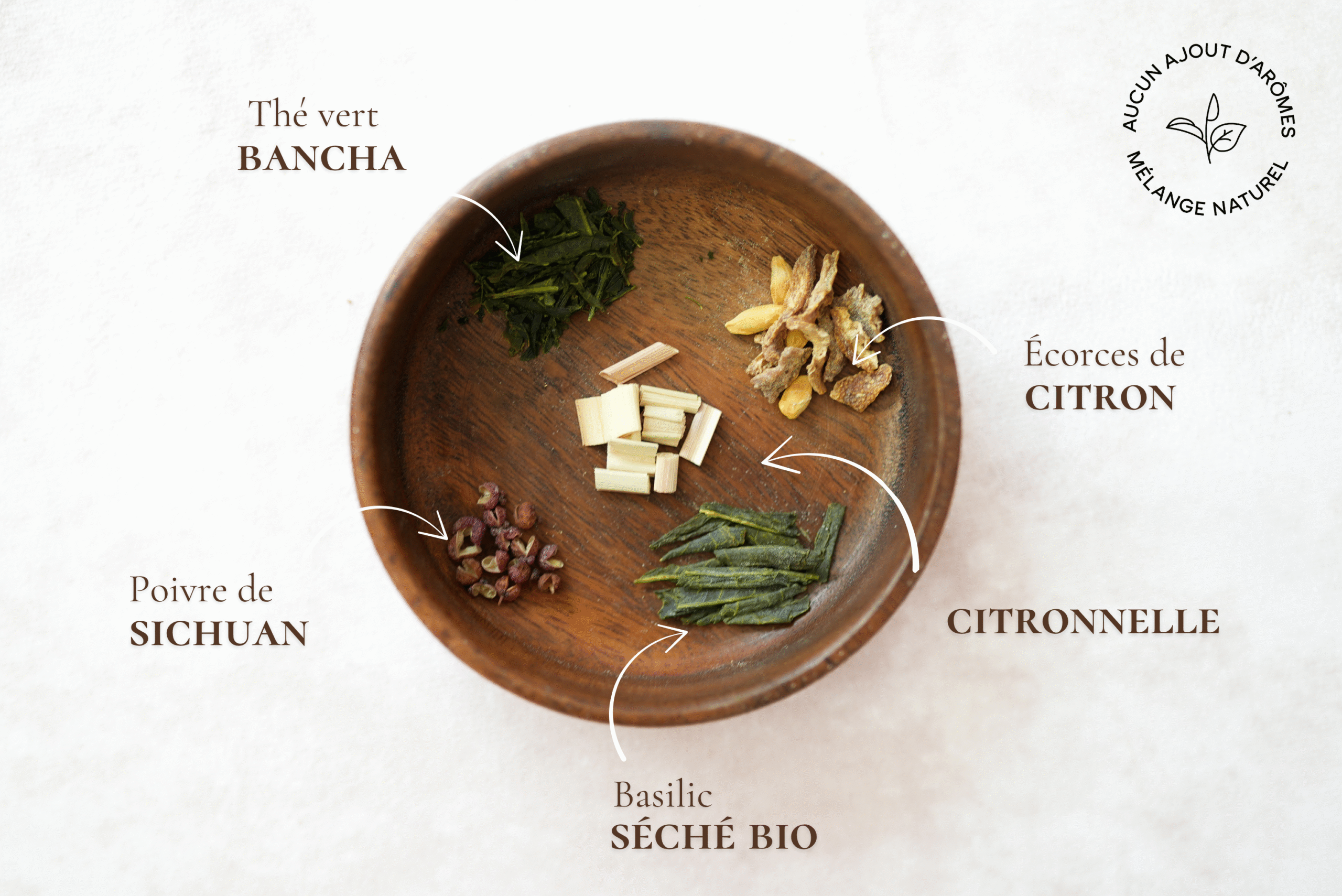 L'équilibre subtil entre la fraîcheur aromatique d'un basilic séché et le peps, l'acidulé d'une écorce de citron non traité. On parsème le tout de citronnelle et d’un soupçon de poivre breton pour réhausser !