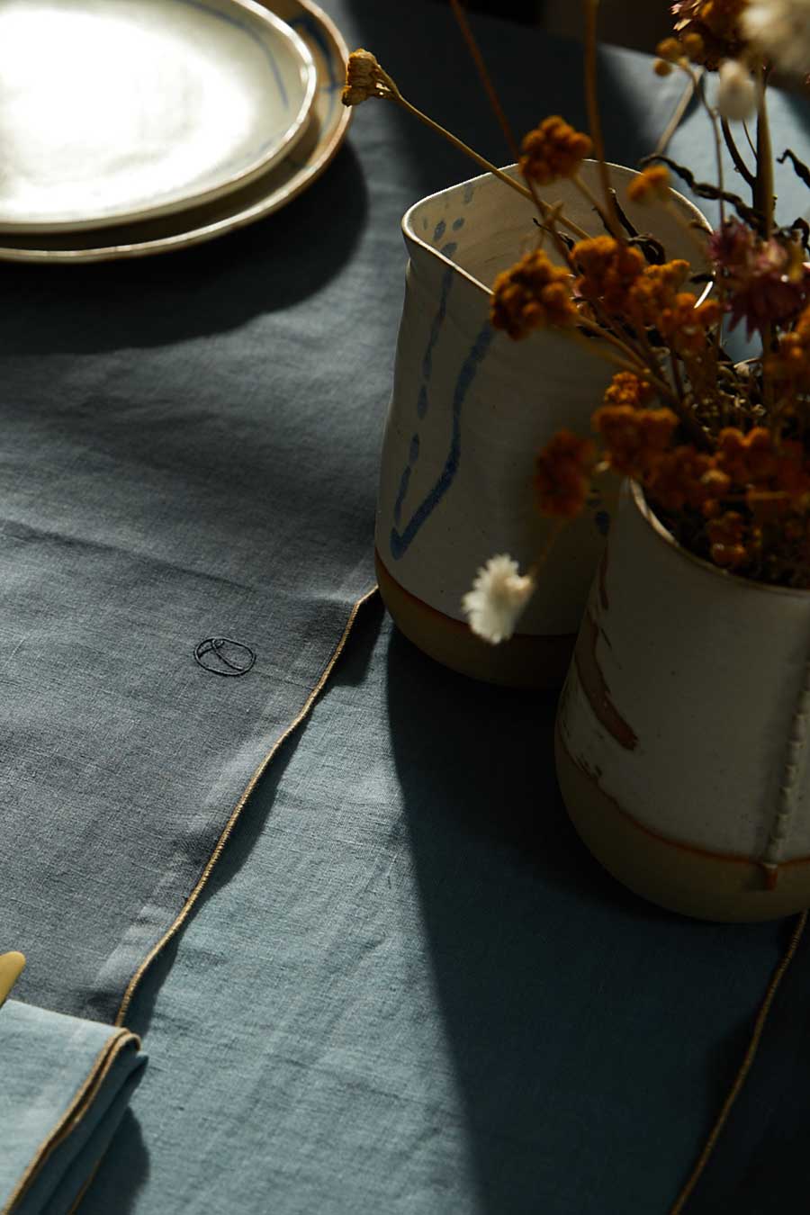 - Une collection 100% pur lin lavé, fabriquée et brodée en France.