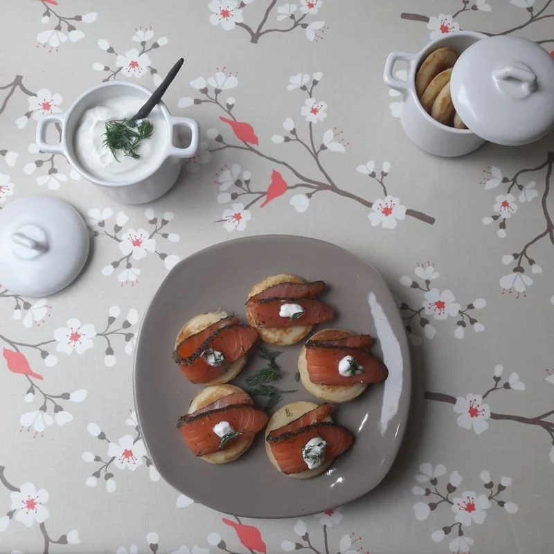 Nappe Fleurs de cerisier Nappe coton enduit fabriquée dans les Vosges 100% made in FranceNappe japonisante imperméable, anti-tache et déperlanteImpression du tissu certifié Oeko-Tex classe I, enduction sans produits toxiques, sans PVC, sans phtalates