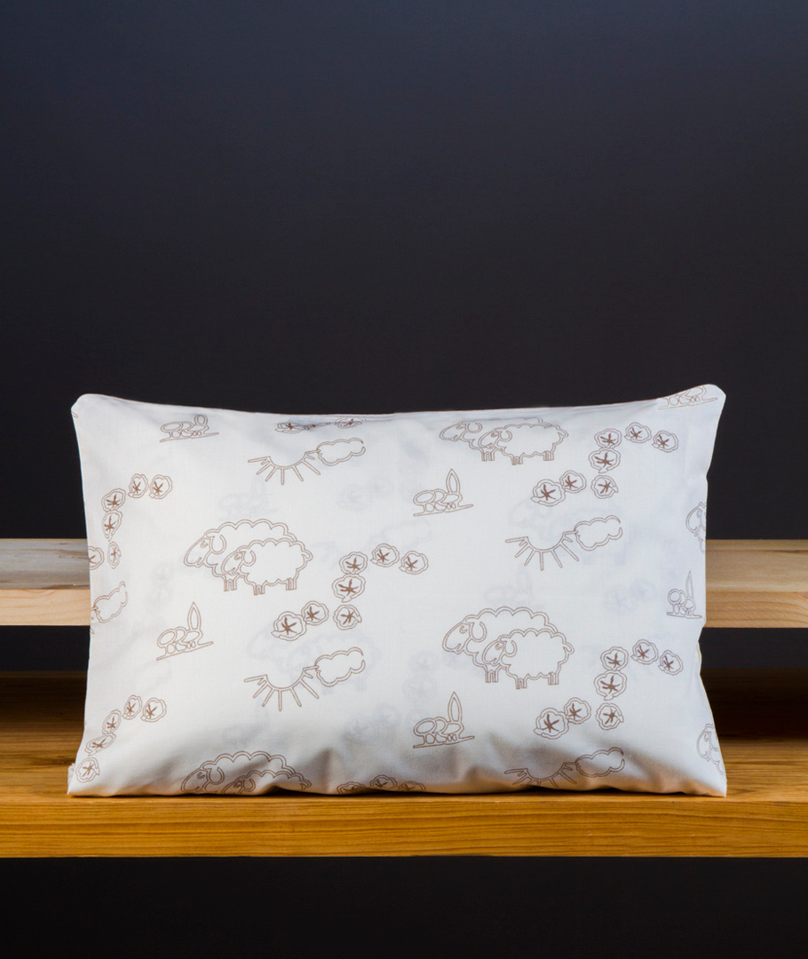 Vendu avec sa taie en coton bio imprimé écru.