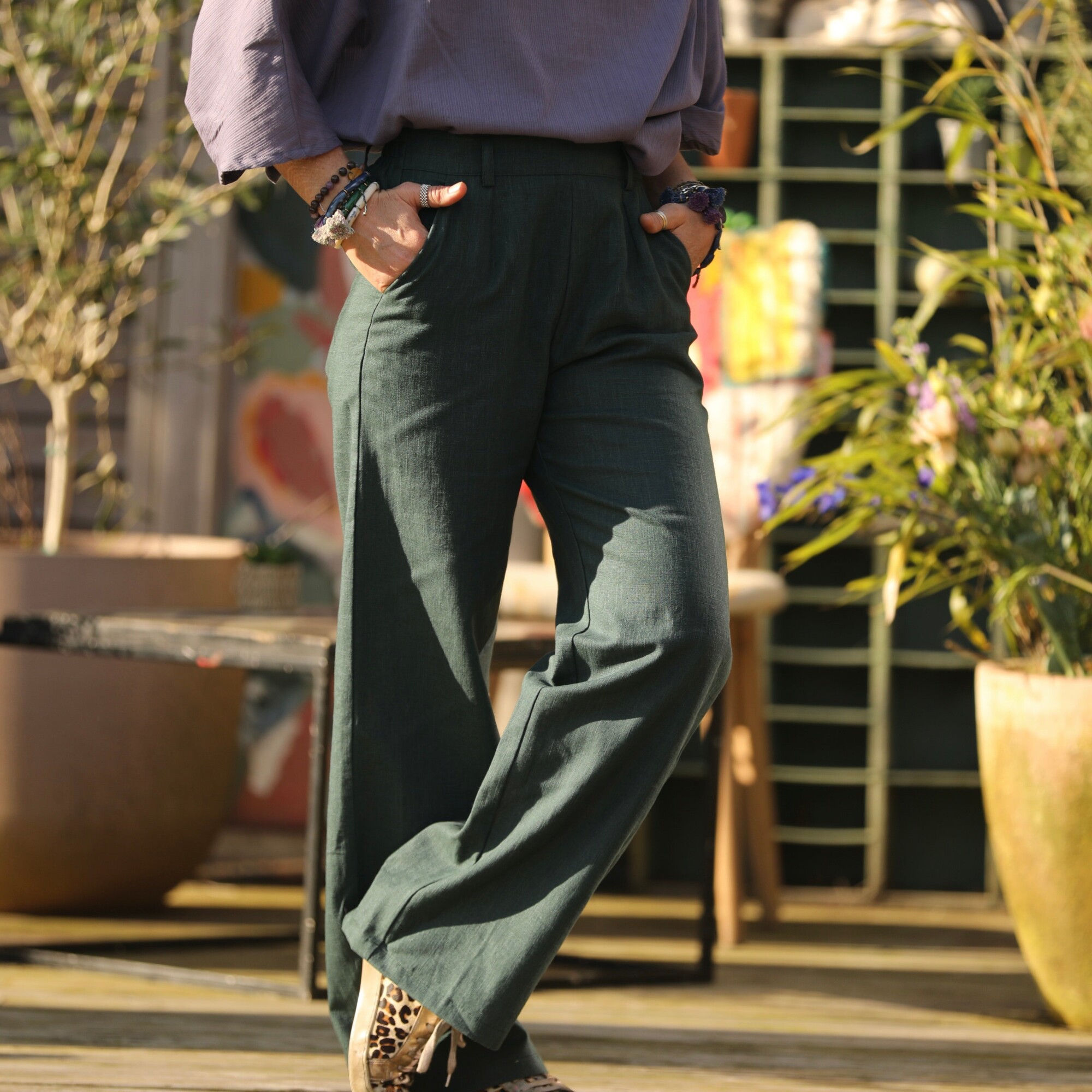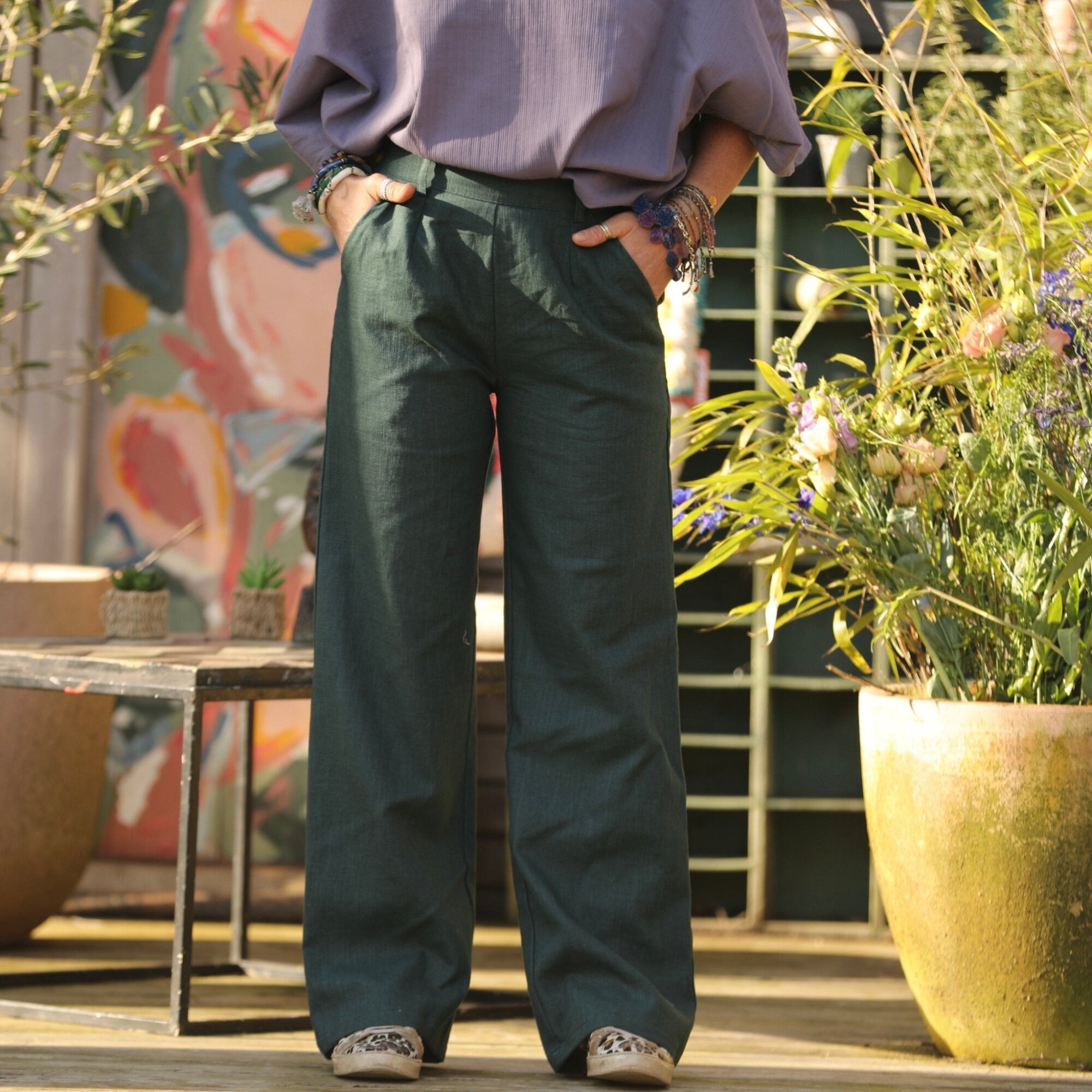 Pantalon Nestor lin vert émeraude