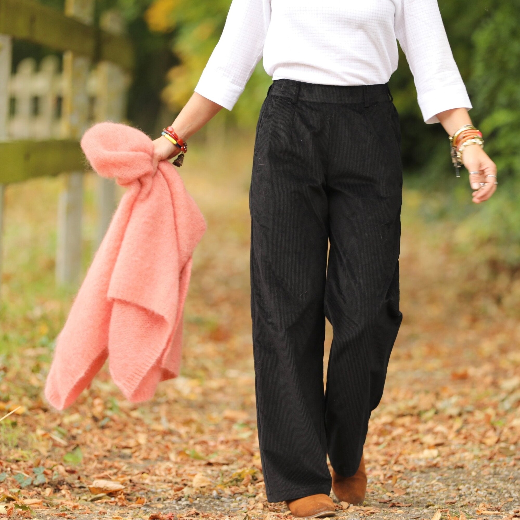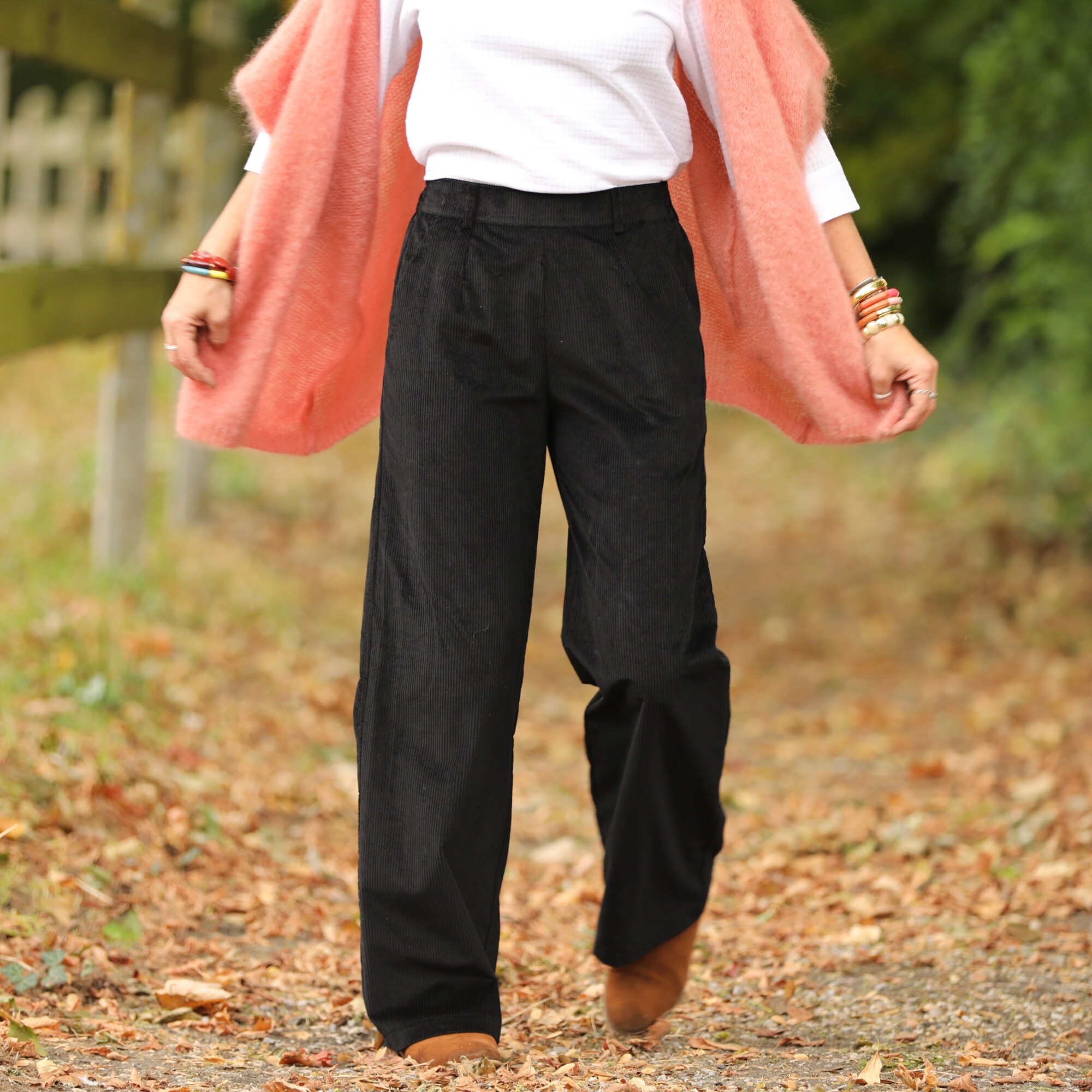 Le pantalon Nestor en velours côtelé noir incarne l’élégance intemporelle et le confort au quotidien. Confectionné dans un 100 % coton au toucher doux et à la texture côtelée raffinée, il offre une tenue parfaite et un tombé structuré.