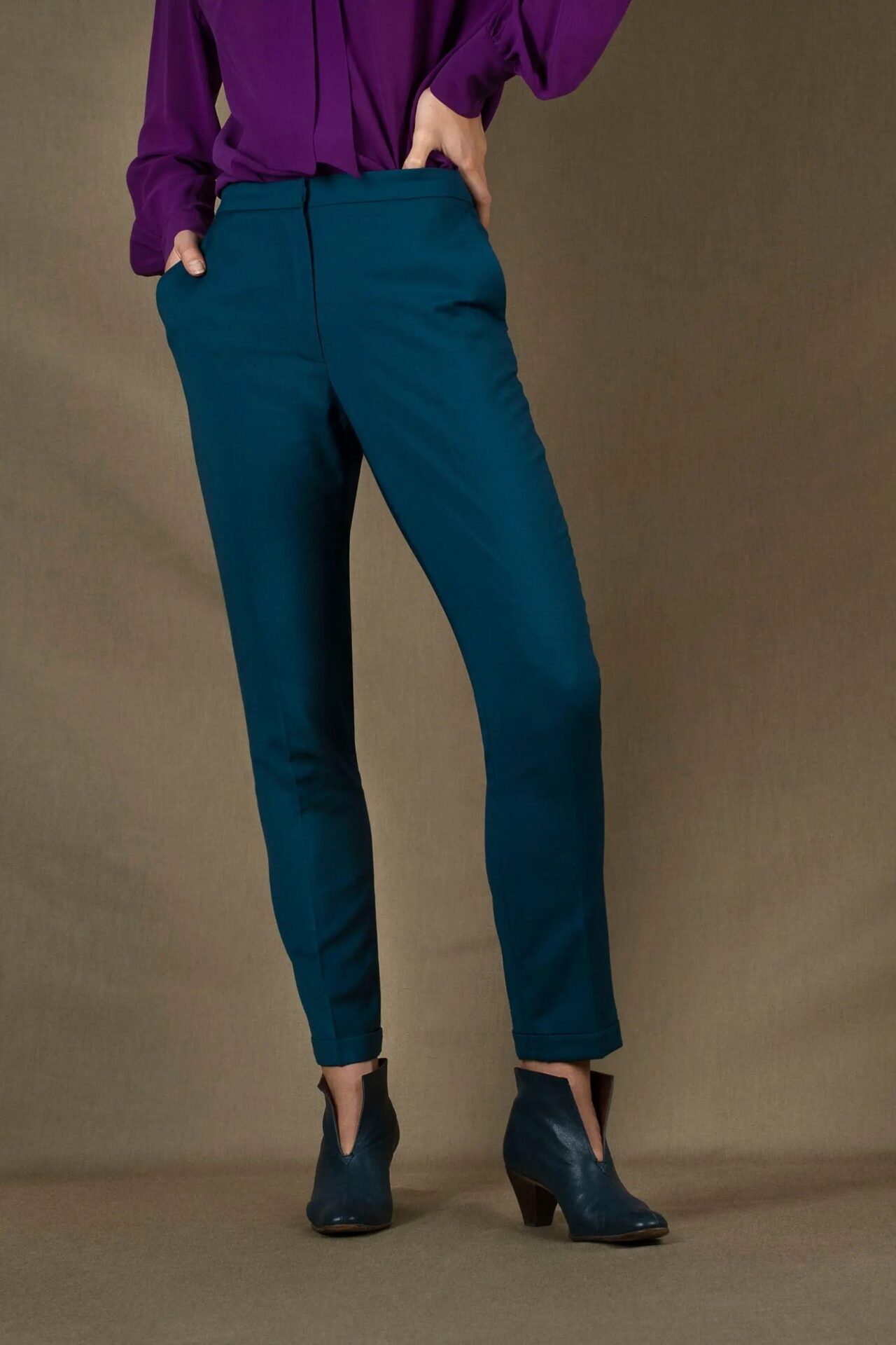Pantalon Tailleur Femme Cigarette Laine Bleu canard - Conception