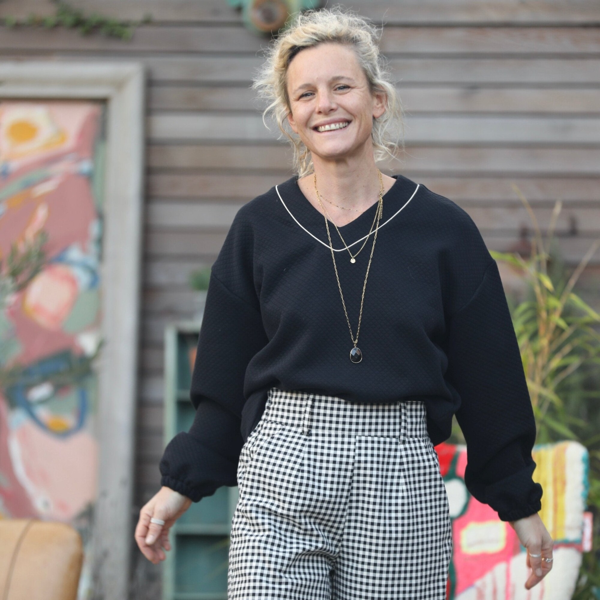 Tom, avec ses jambes larges, ses pinces piqués à la taille et son dos élastiqué, c'est un pantalon chic et confort. Deux poches côté viennent habiller ce pantalon.