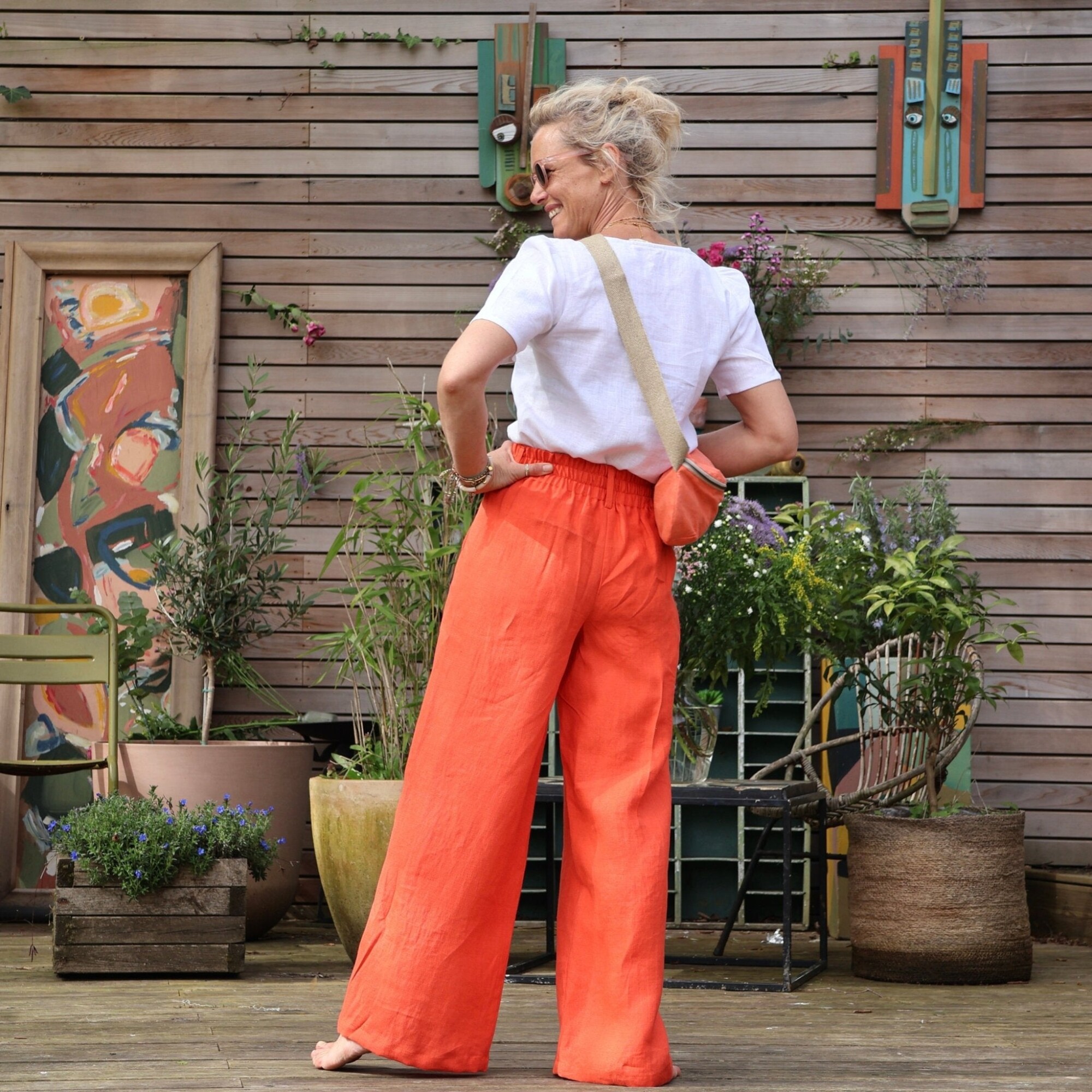 Tom, avec ses jambes larges, ses pinces piqués à la taille et son dos élastiqué, c'est un pantalon chic et confort. Deux poches côté viennent habiller ce pantalon.