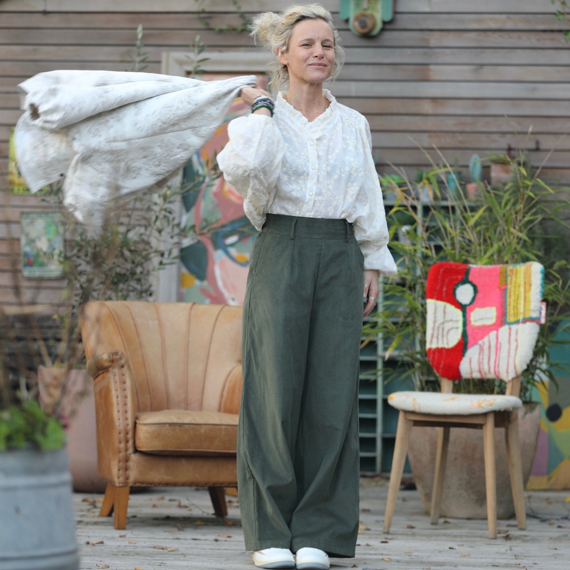 Tom, avec ses jambes larges, ses pinces piqués à la taille et son dos élastiqué, c'est un pantalon chic et confort. Deux poches côté viennent habiller ce pantalon.