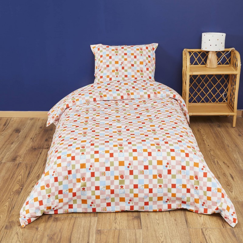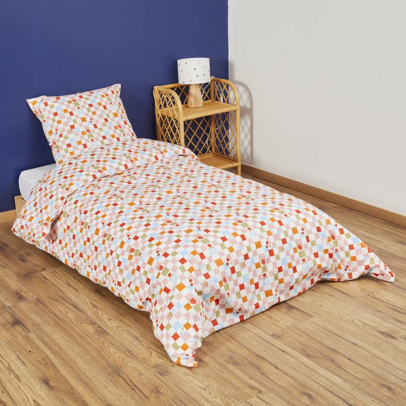 Offrez à votre enfant des nuits confortables grâce à la parure de lit Colette, ajoutant une touche de douceur et d'originalité à son espace de repos. La parure comprend une housse de couette, dont vous pouvez choisir la taille dans le menu déroulant, ainsi qu'une taie d'oreiller de dimensions standard (63x63 cm).