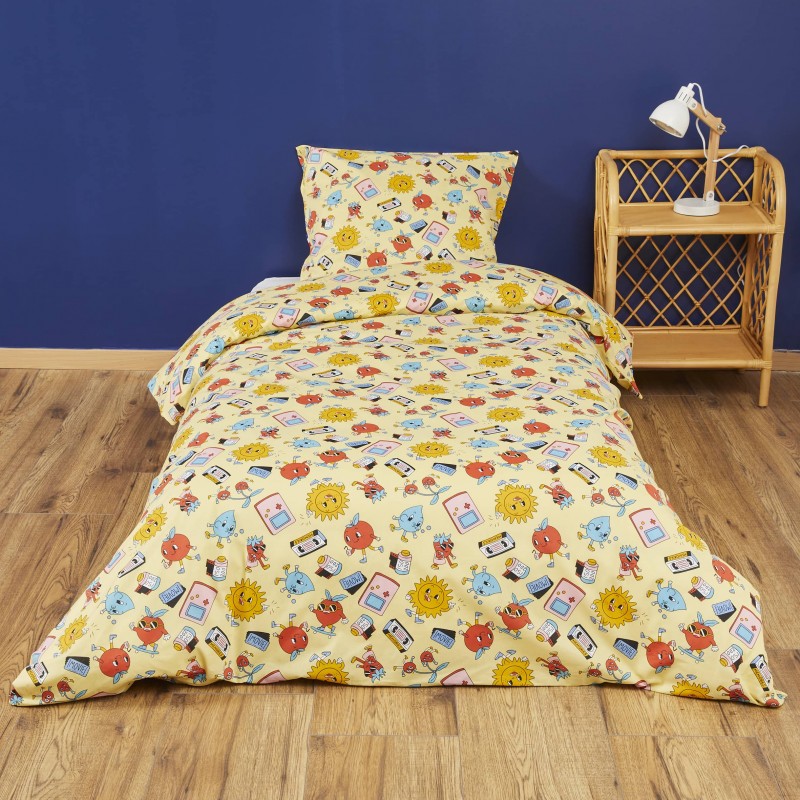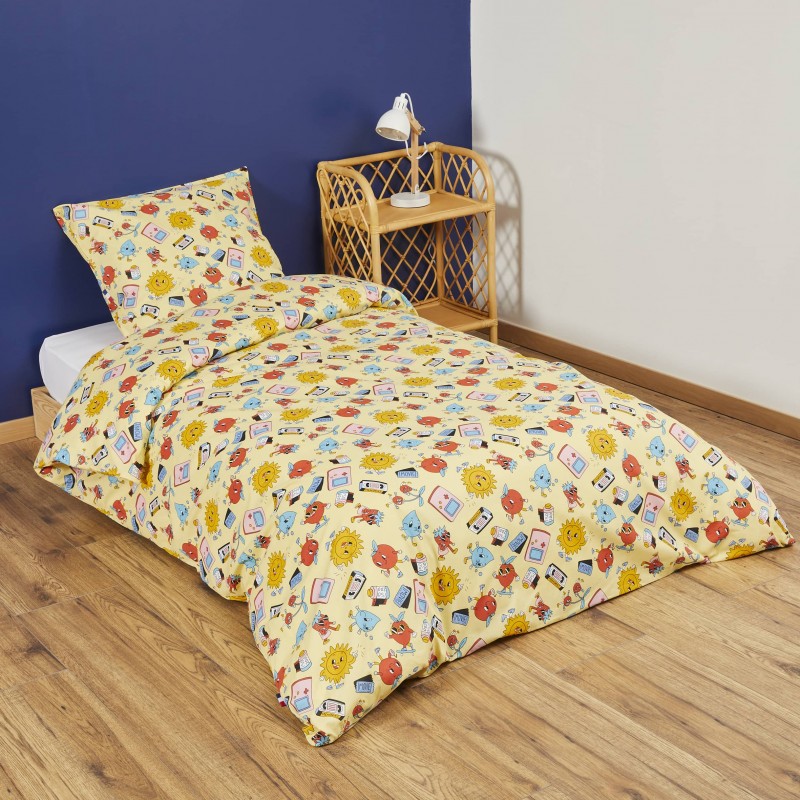 Offrez à votre enfant des nuits confortables grâce à la parure de lit Rétro, ajoutant une touche de douceur et d'originalité à son espace de repos. La parure comprend une housse de couette, dont vous pouvez choisir la taille dans le menu déroulant, ainsi qu'une taie d'oreiller de dimensions standard (63x63 cm).