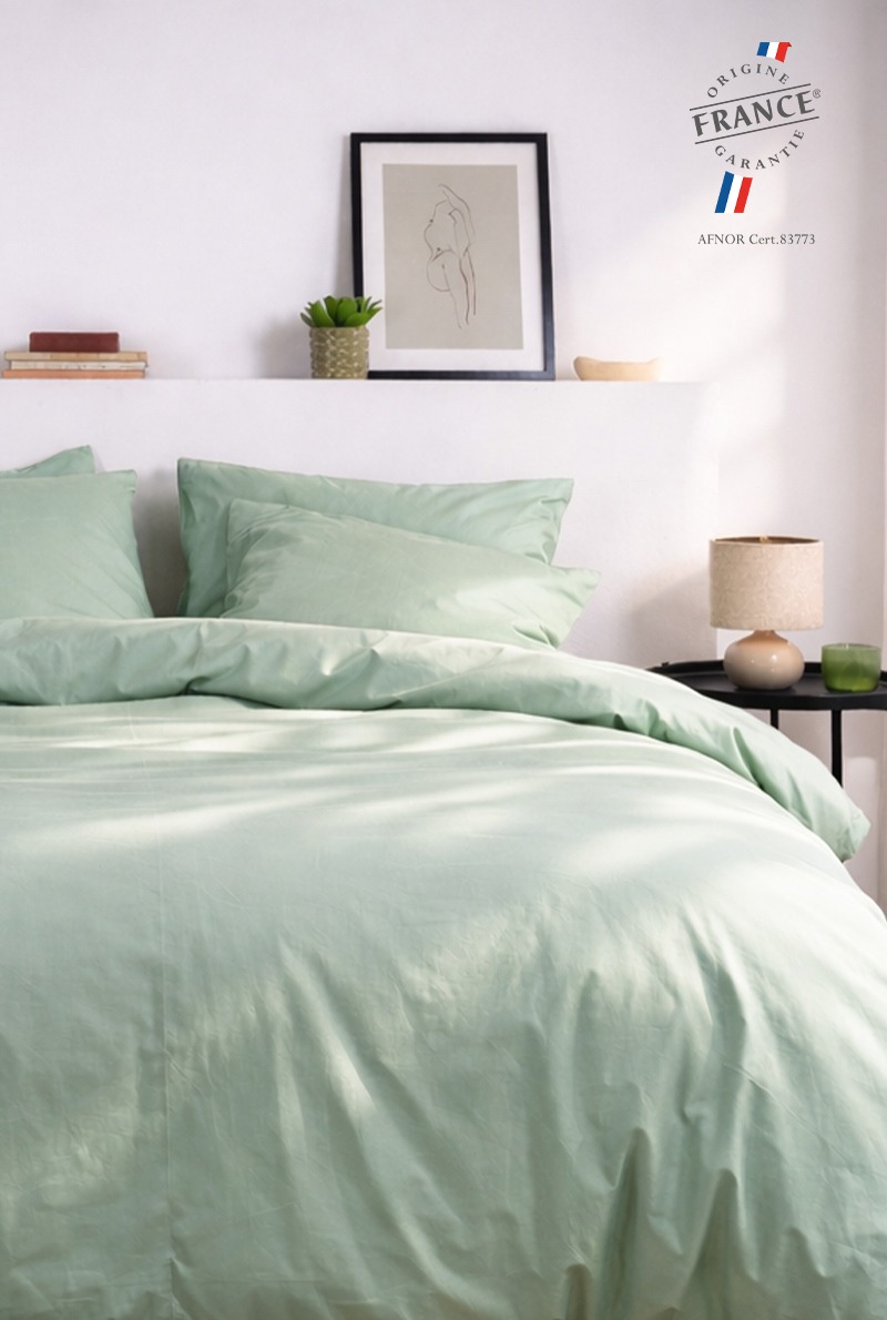 | Housse 240x220 cm + taies 50x75 cm (x2) | Vert | Percale de coton bio | 59,90€ |
