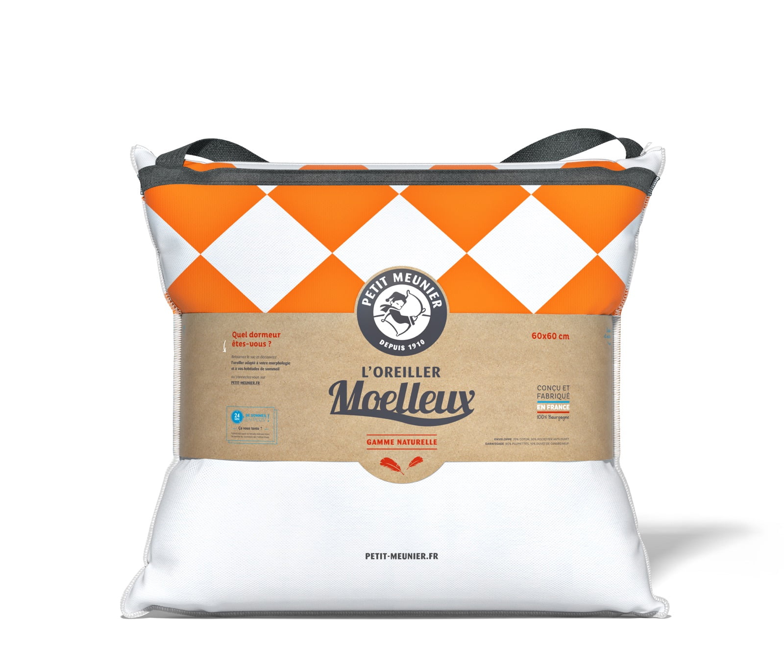 Douillet et accueillant, l'Oreiller Moelleux vous emmène au pays des rêves.Garni de plumes de canard de France et enveloppé dans un tissu polycoton, tissé également en France, l'oreiller moelleux carré Petit Meunier est conçu pour vous offrir un confort ergonomique et s'adapter à vos habitudes de sommeil.Fermez les yeux et dormez apaisé !