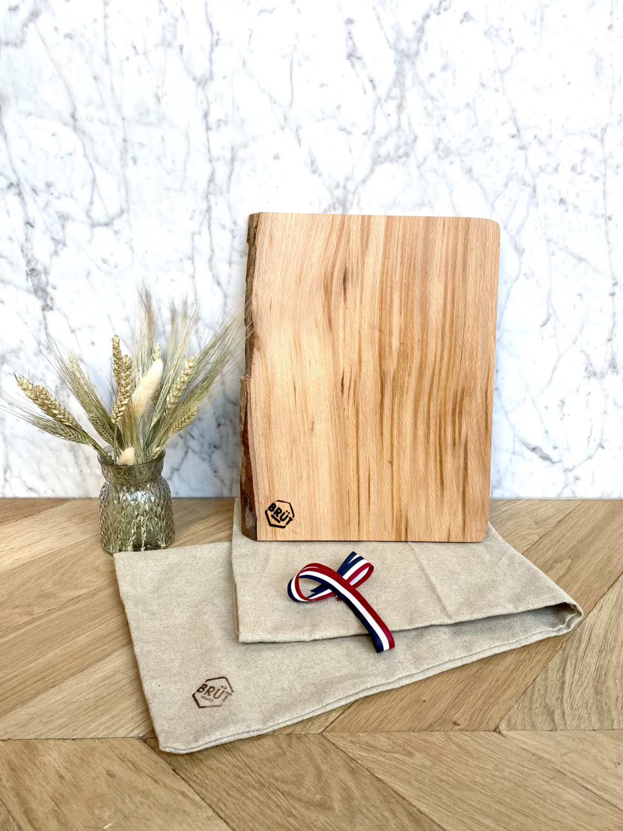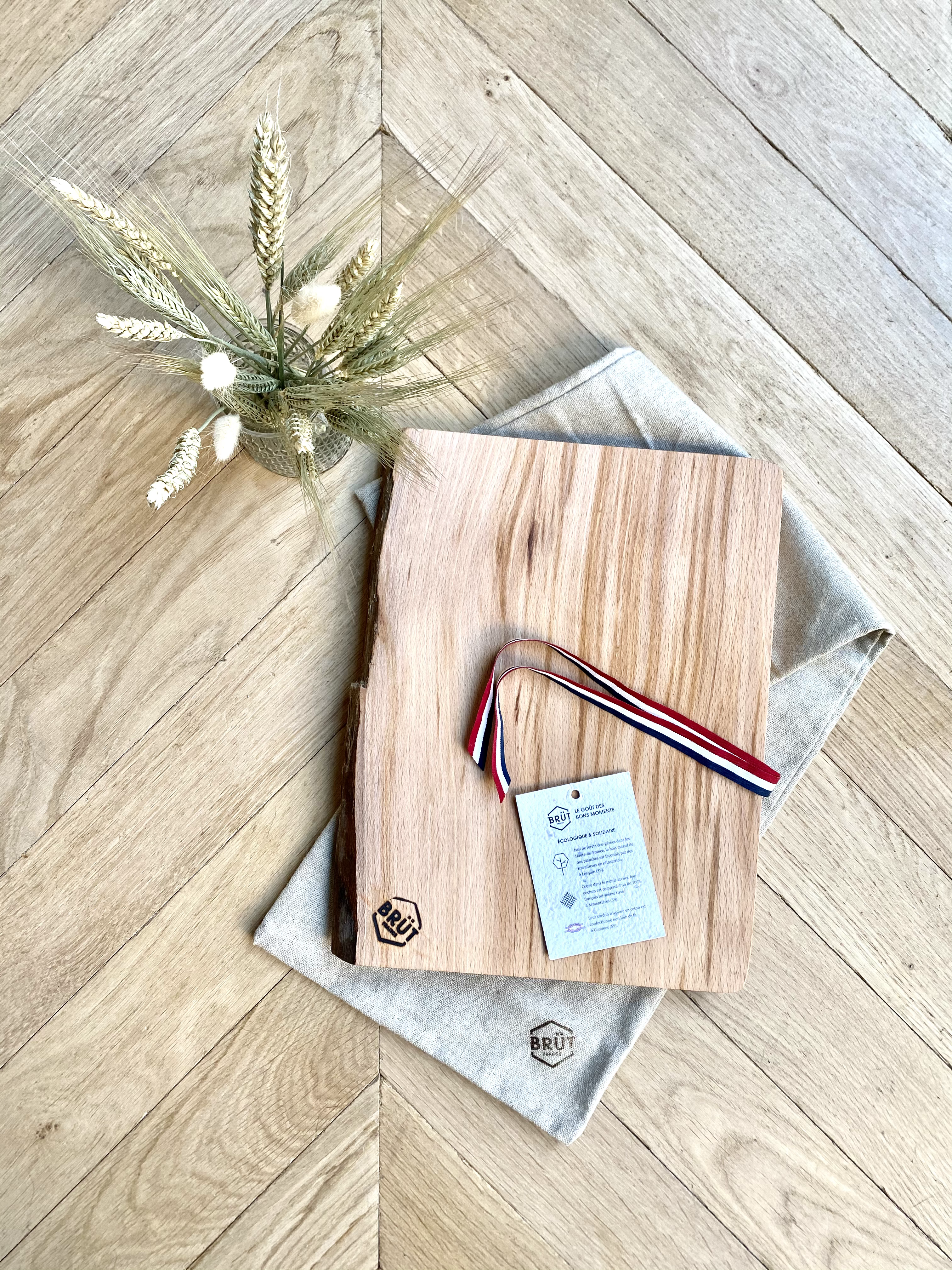 BRÜT vous propose des planches de présentation et de découpes en bois massif, de chêne et de frêne. Les planches sont découpées dans la masse et emballées dans un pochon en lin réutilisable. Tout provient et est fabriqué dans un rayon de 40 km autour de Lille.
