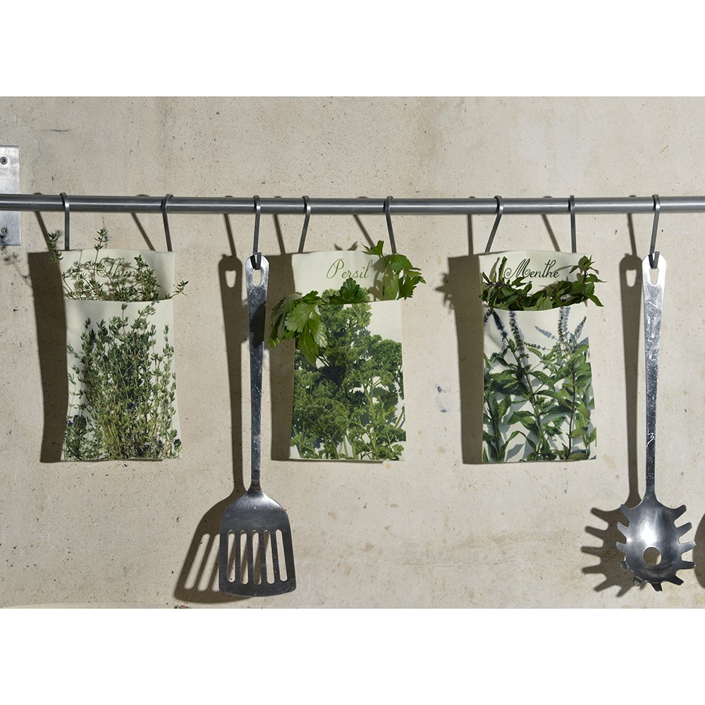 Offrez à votre Thym cette poche pour herbes aromatiques de la créatrice Maron Bouillie. A suspendre, il fera de vos aromates les fleurs de votre cuisine.