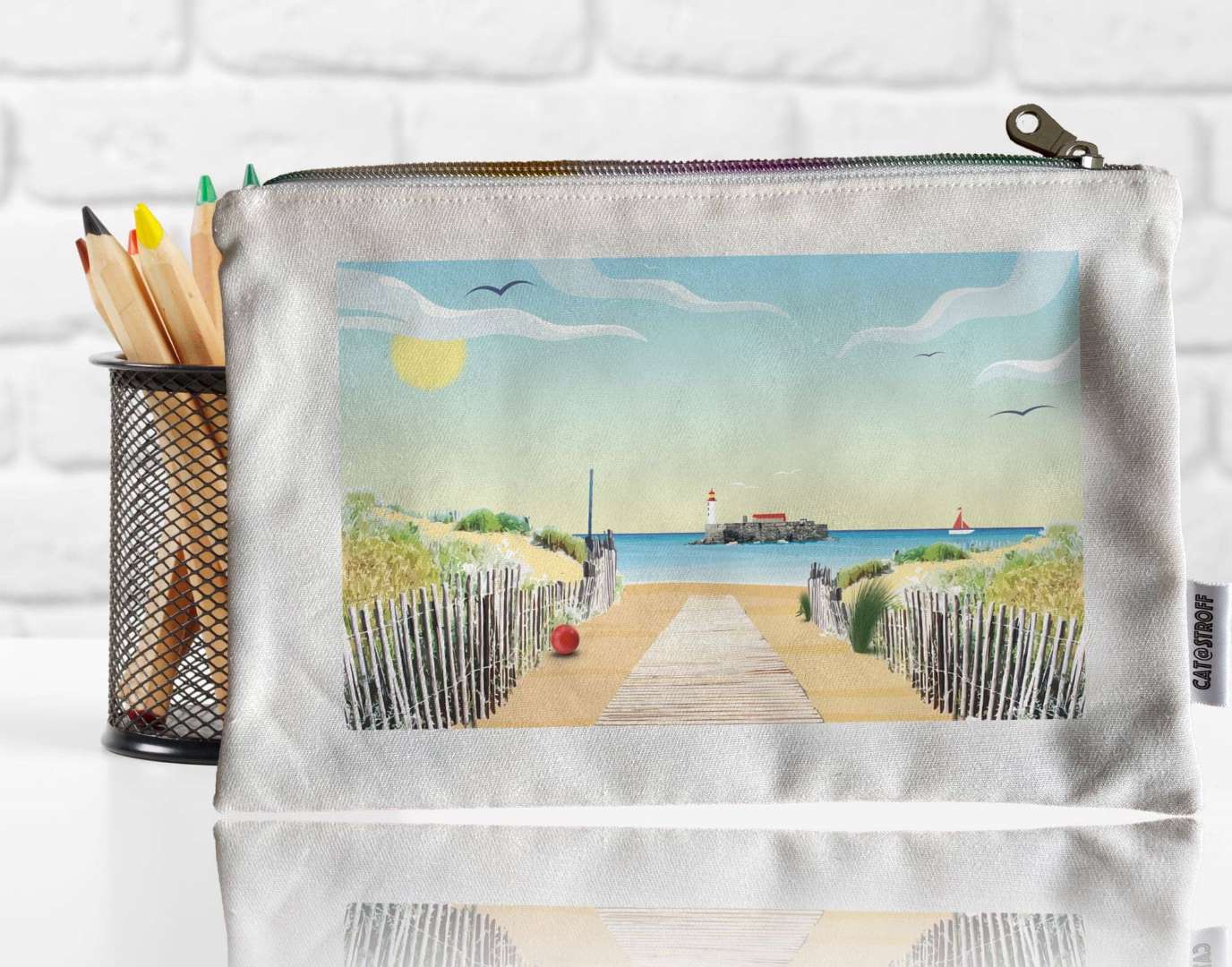 Découvrez la Pochette Cap d'Agde Fort Brescou de Foliove, un produit exclusif entièrement conçu et fabriqué en France. Réalisée en coton certifié Oeko-Tex, cette pochette artisanale allie solidité, robustesse et design original avec son imprimé intérieur de palmiers bleus. Son illustration unique de Fort Brescou et sa fermeture éclair métallique multicolore ajoutent une touche d'authenticité et de fantaisie. Parfaite pour vos essentiels, elle représente l'alliance parfaite entre fonctionnalité, qualité artisanale et style français.Un travail artisanal et familial, dans lequel Foliove s'est associé à Cat@stroff pour vous proposer cette trousse originale et colorée (jusqu'à la fermeture éclair !)