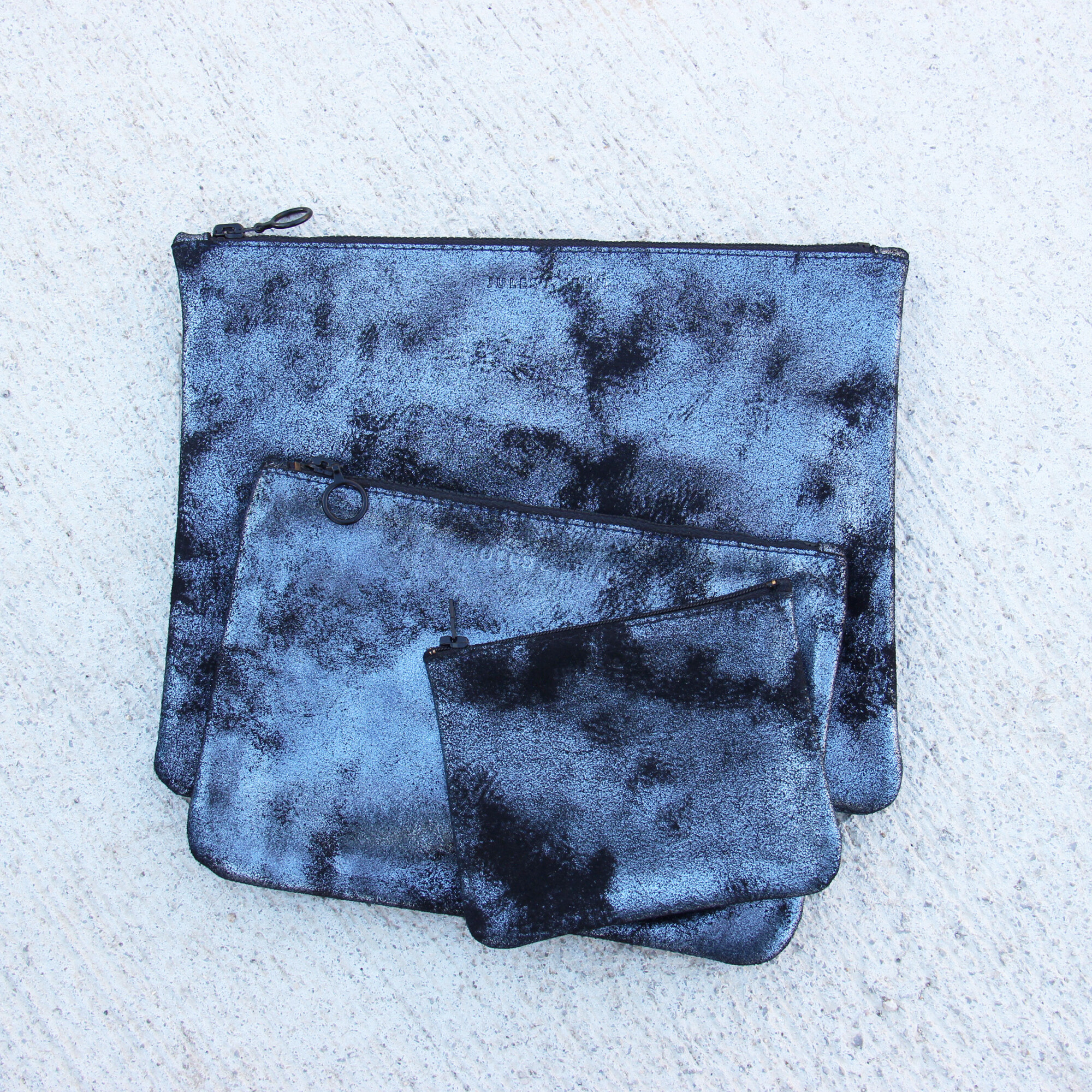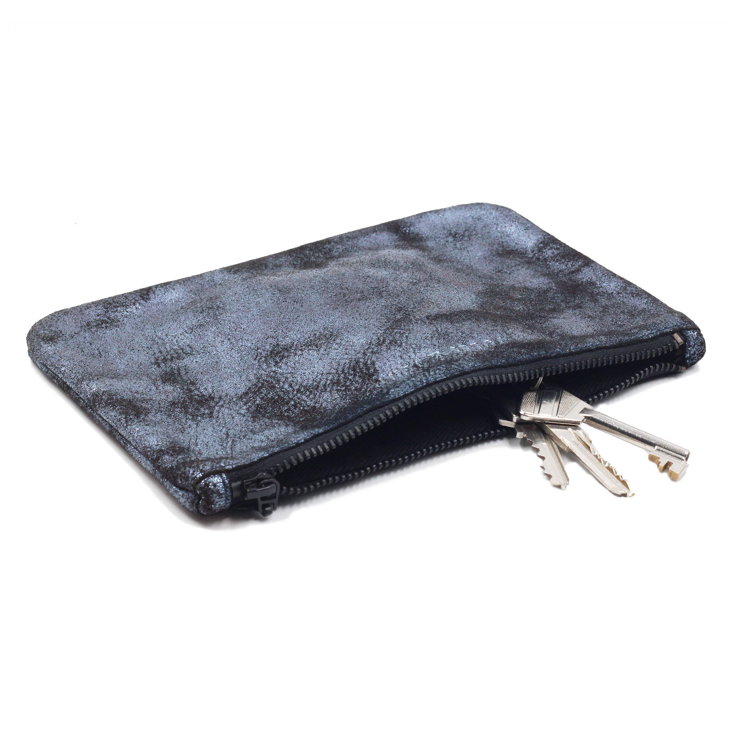 Pochette cuir upcyclé noir irisé