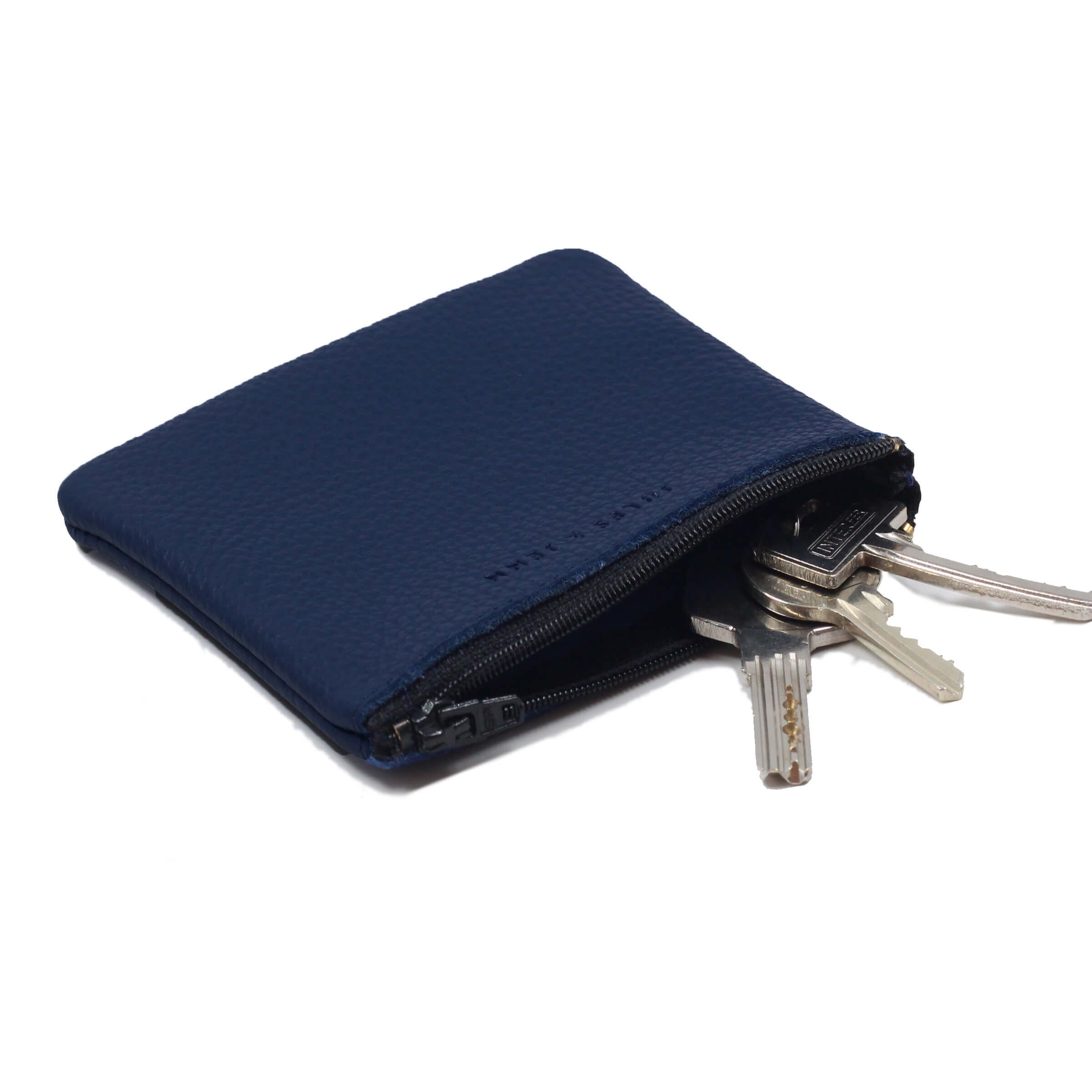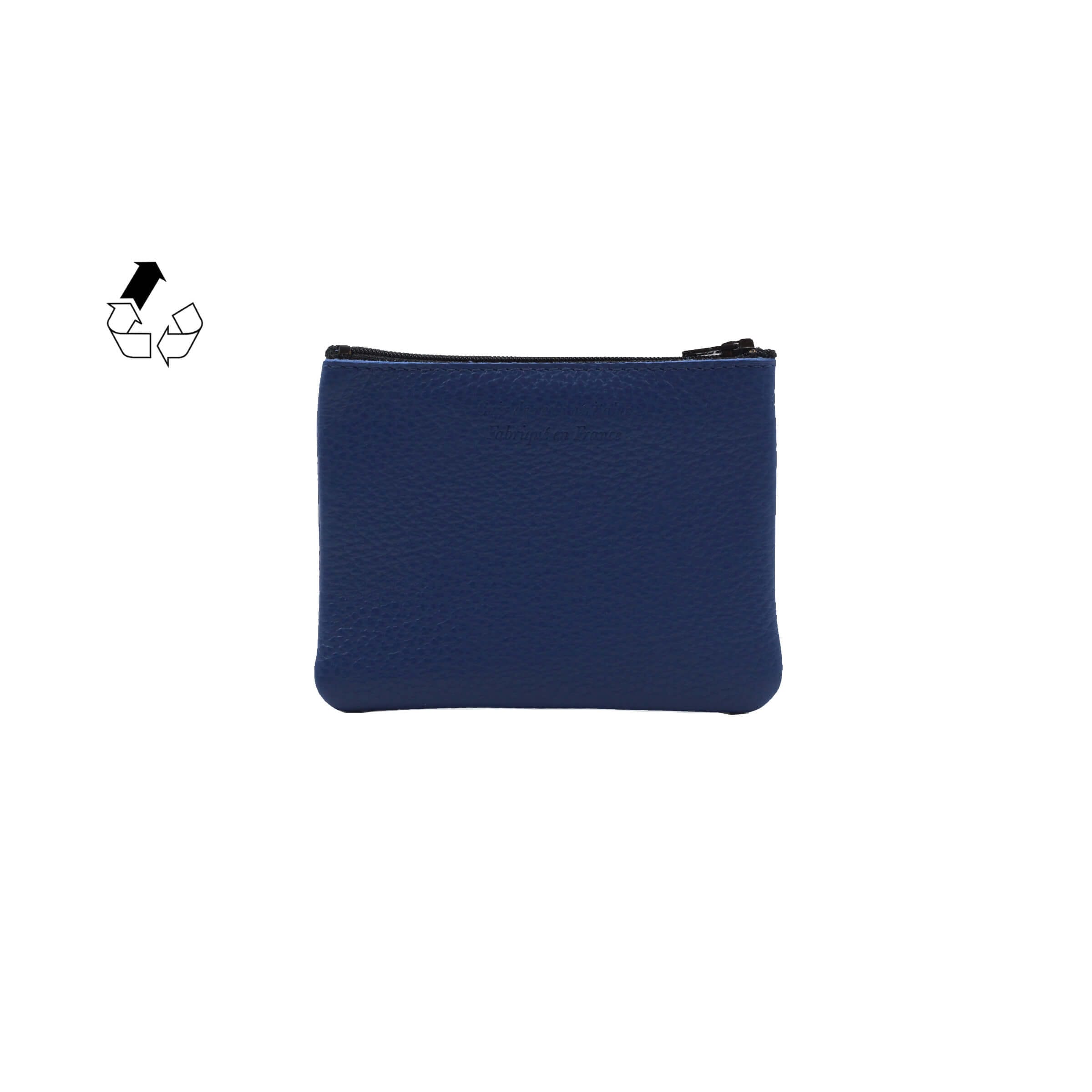 Pochette cuir grainé upcyclé bleu royal - Petit modèle