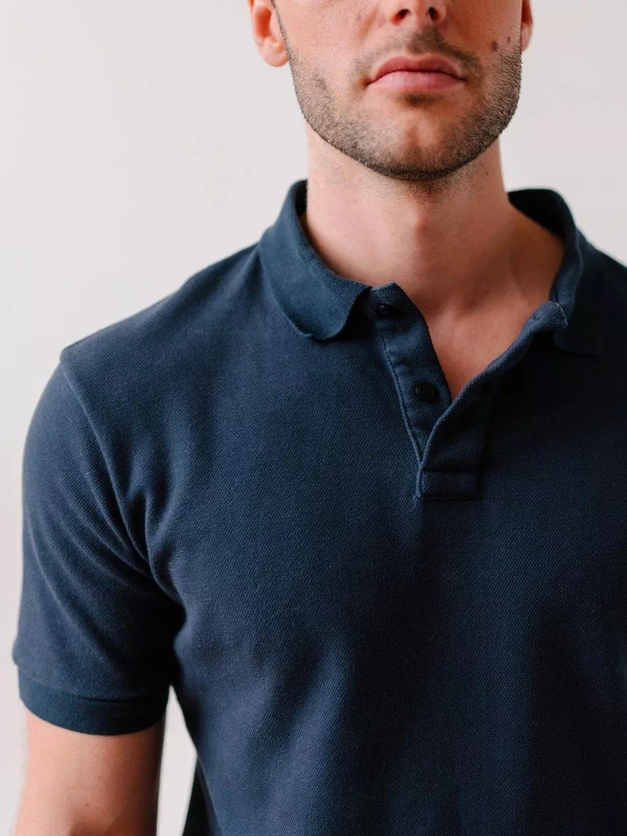 LE POLO 100 % COTON BIO BLEU MARINE Notre premier polo à manches courtes en bleu marine, un basique à avoir dans sa garde-robe ! Fabriqué dans un tissu en maille piqué 100 % coton bio, il ne bouge pas dans le temps et au lavage. Avec sa coupe droite décontractée, il assure une allure naturelle, moderne et un style imparable.