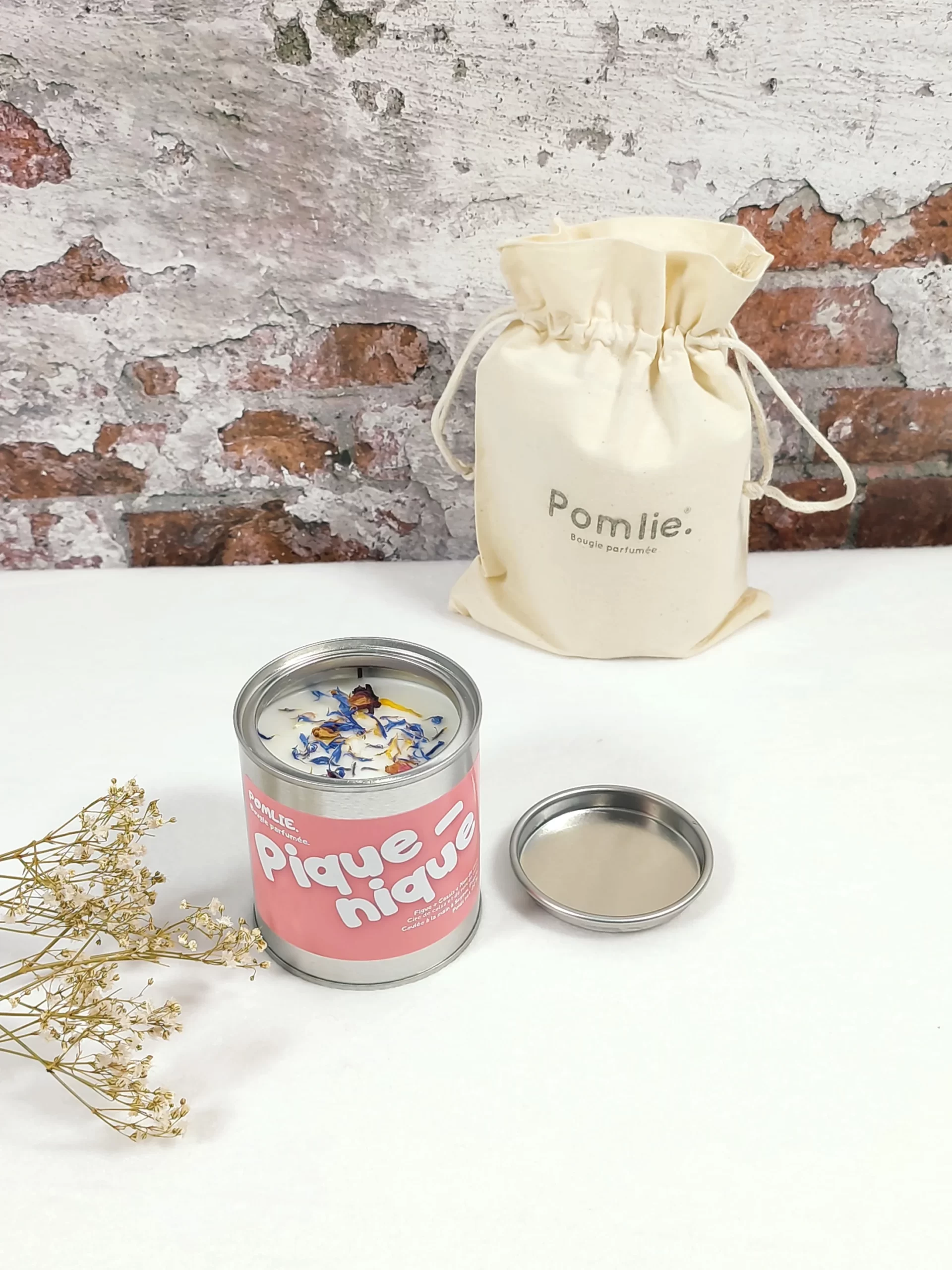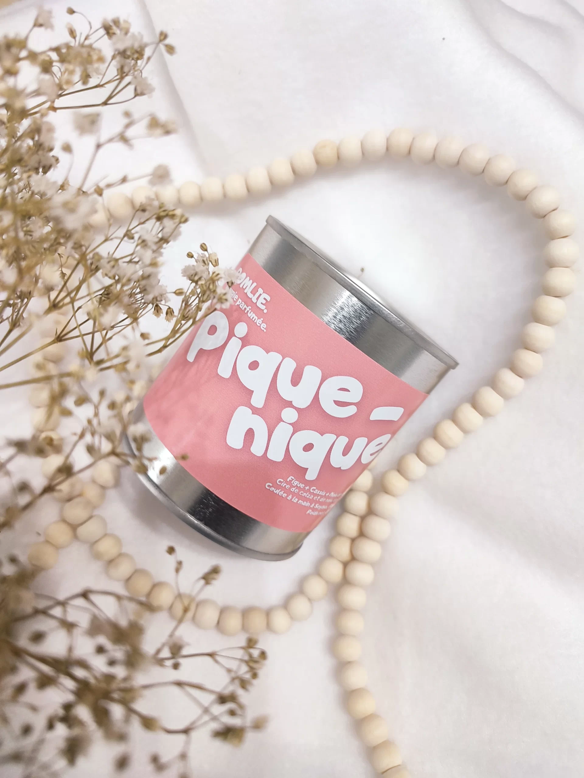 Pique-nique est une bougie gourmande et fruitée, qui vous fait profiter du parfum sucré et acidulé de la figue, du cassis et de la noix de coco.Son parfum est composé de notes de figue, de cassis et de noix de coco, qui évoquent la douceur, la fraîcheur et l’exotisme d’un pique-nique ensoleillé.Allumez la bougie Pique-nique et profitez d’une ambiance gourmande et fruitée. C’est le cadeau idéal pour les amateurs de bougies sucrées et naturelles, ou pour se faire plaisir tout simplement !Toutes nos bougies sont fabriquées en France avec 100% de cire de colza et de noix de coco (végan) qui permet un temps de brulage de plus ou moins 50 h, une huile de parfum haut de gamme de Grasse et d'Europe et des mèches en coton sans plomb.De plus elles sont coulées à la main, parsemées de pétales de fleurs séchées, le tout dans un pot en métal entièrement recyclable.Elles sont soigneusement emballées dans un emballage éco-responsable.Nos parfums sont sans CMR, sans parabèns, sans phtalates et jamais testés sur les animaux.