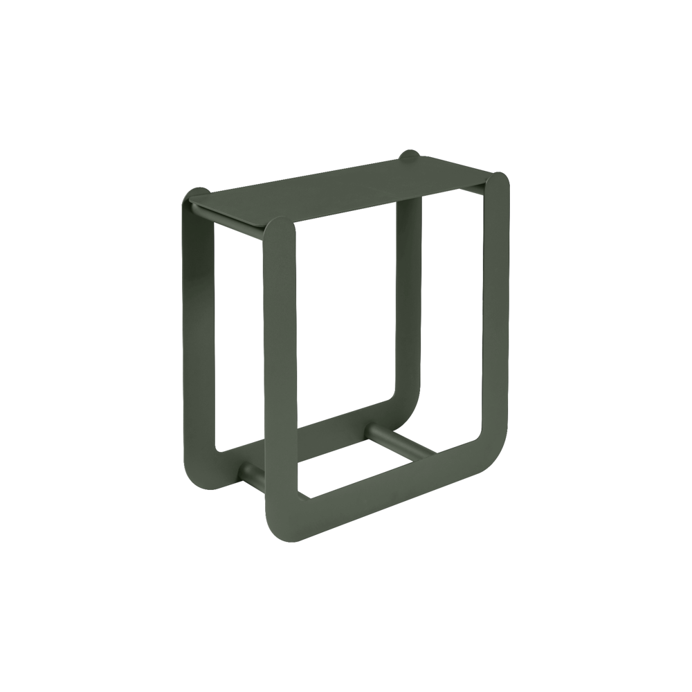 Porte buches NEVADO fabriqué par les ateliers FERMOB. Un porte-bûches qui fait également office de table d'appoint. Un design moderne, élégant et minimaliste.