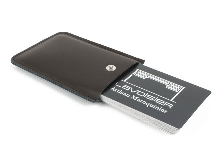 Porte-cartes de visite en cuir – Élégance discrèteCe porte-cartes en cuir allie simplicité et raffinement. Son format compact et sa fermeture par bouton-pression en font un accessoire pratique au quotidien. Un classique intemporel pour garder vos cartes de visite toujours à portée de main, avec style.Fabrication artisanale française