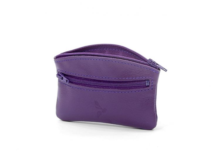 Porte-monnaie fermeture zippée en cuir violet - 204
