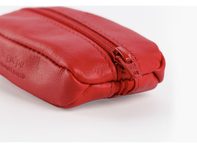 Porte-monnaie en cuir rouge, format "grain de café".Double emplacements pour pièces et billets ; son porte-clé attenant fait de cet article un indispensable.Ce porte-monnaie se différencie par son cuir et sa qualité de fabrication.Vous entrez dans l'univers du luxe avec un produit très raffiné et minimaliste. Fabriqué entièrement en cuir pleine fleur aniline !Les matériaux de premier plan garantissent une durée de vie que l'on ne trouve plus aujourd'hui sur le marché.Cuir français et fabrication française dans un atelier labellisé Entreprise du Patrimoine Vivant (EPV)