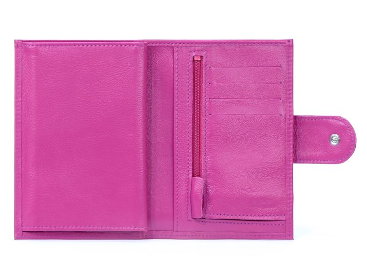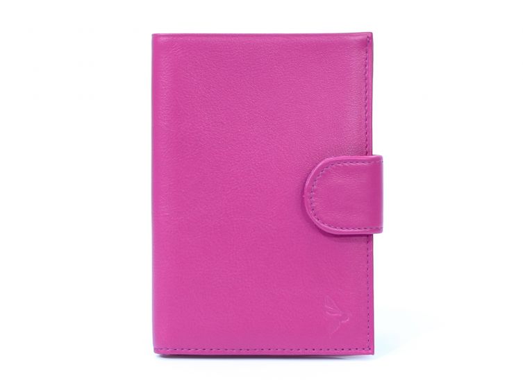 Portefeuille en cuir avec patte de fermeture - fuchsia - 320