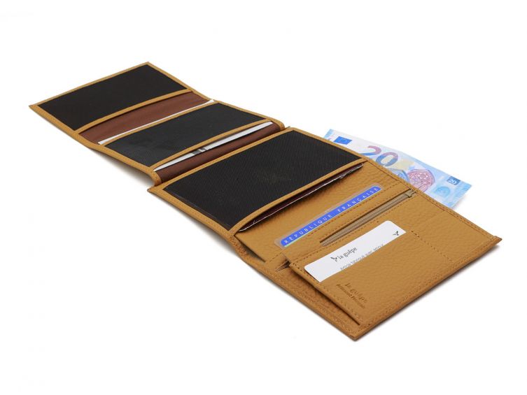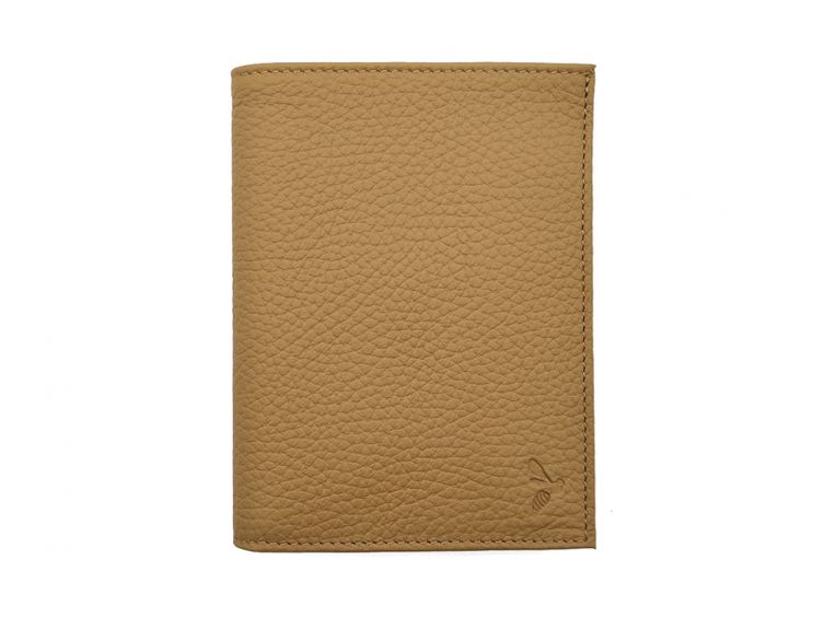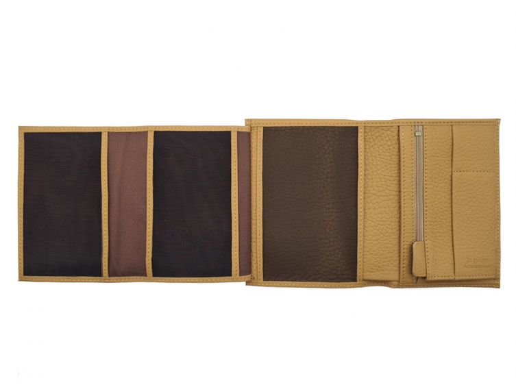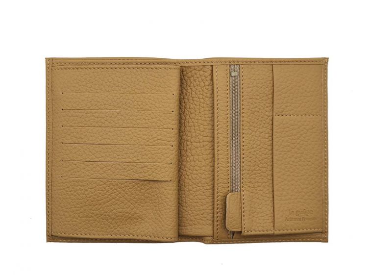 Portefeuille en cuir grainé beige - 15 cm 4 volets - PM-019-05