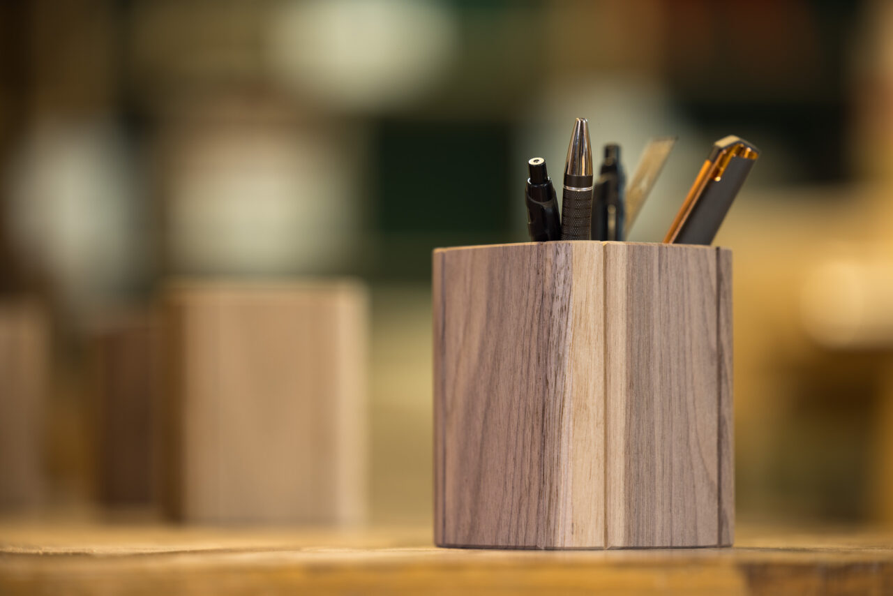 La collection de petits pots à crayon en bois massif trouvera magnifiquement sa place sur votre bureau, chaque pièce est unique car elle présente un veinage propre à l'arbre duquel elle est issue.