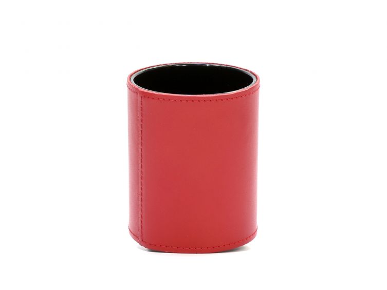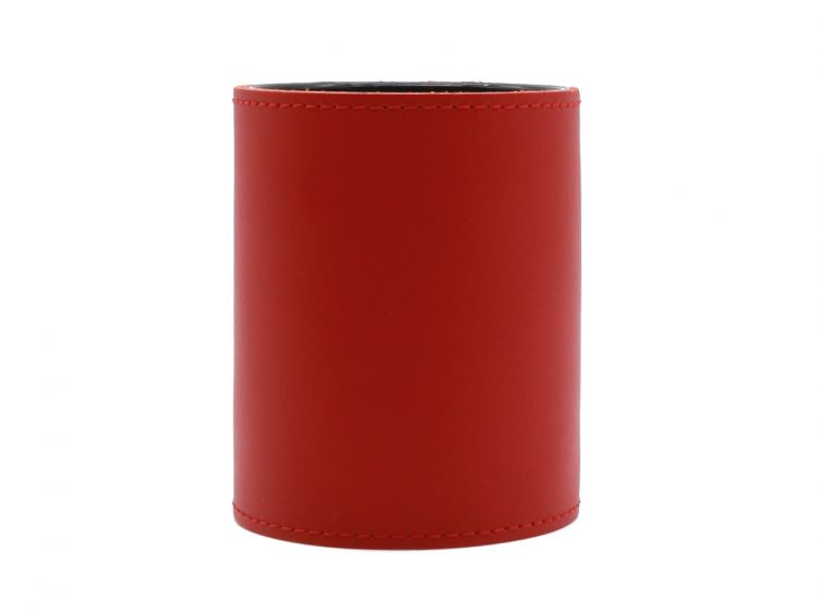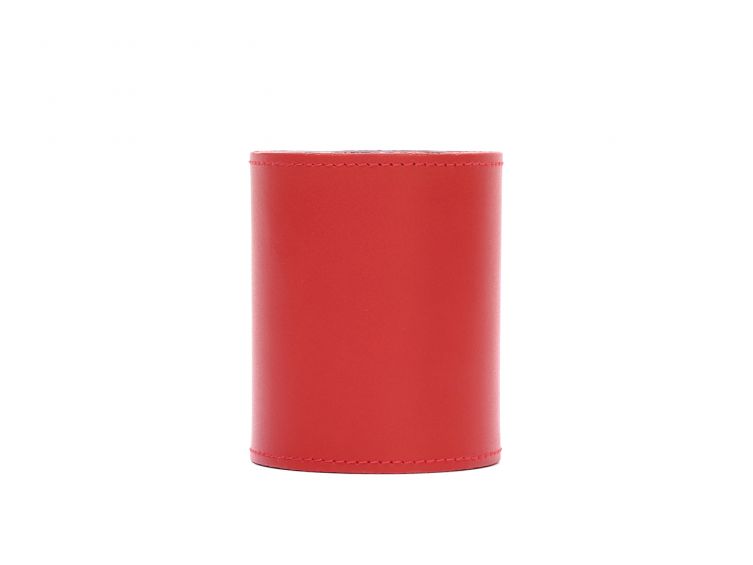 Pot à crayons en cuir rouge coquelicot