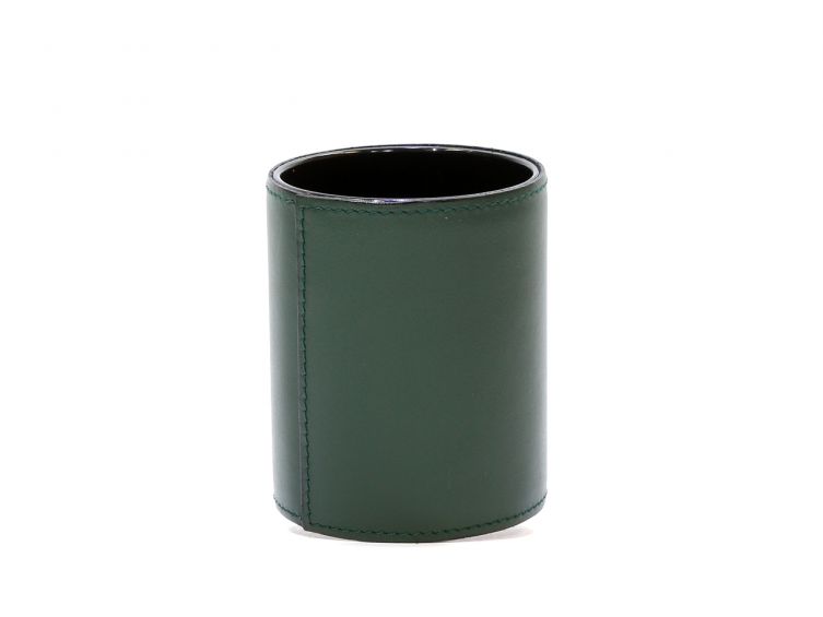 Pot à crayons en cuir vert anglais
