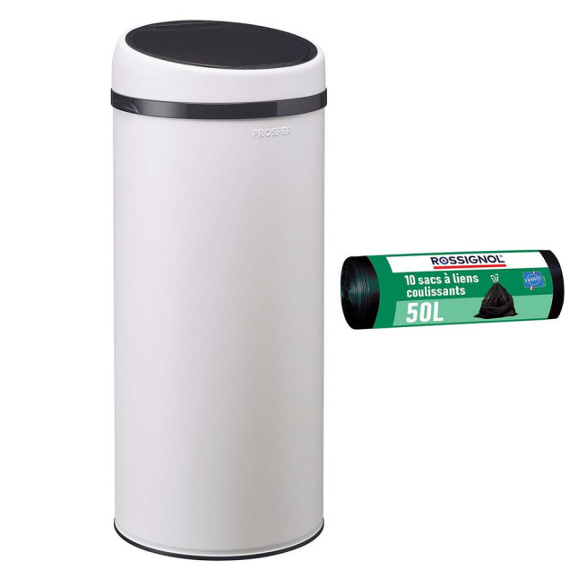 Poubelle à ouverture manuelle 45L et 10 sacs poubelle 50L Blanc Coton