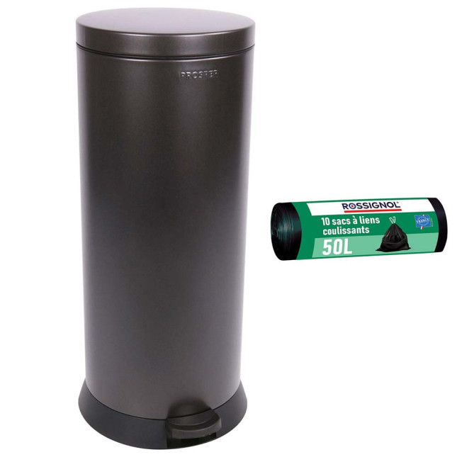 Poubelle cuisine à pédale 30L et 10 sacs poubelle 50L Noir Basalte