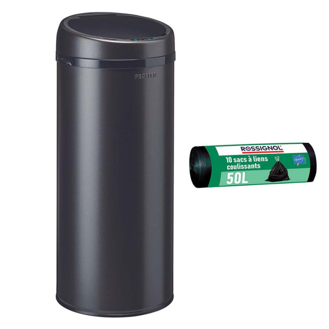 Poubelle cuisine automatique 45L et 10 sacs poubelle 50L Noir Basalte