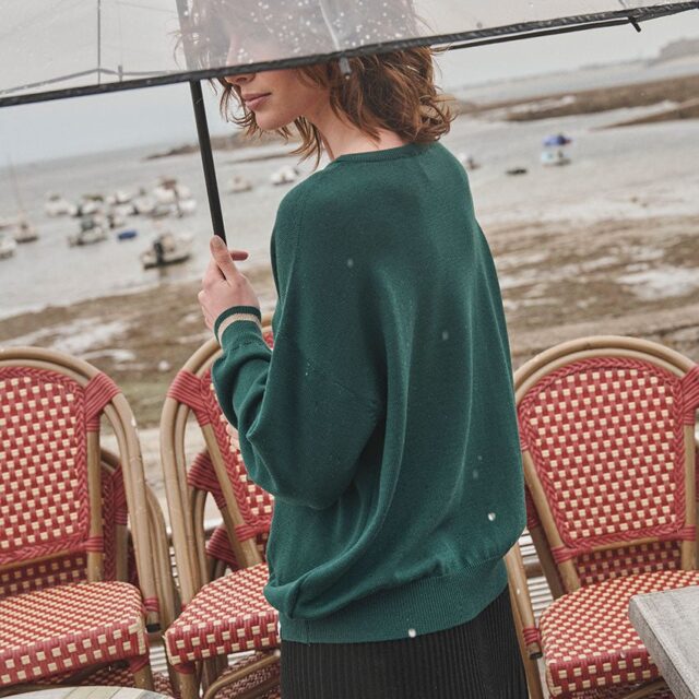 Explorez le monde des pulls enveloppants, de la maille douce au cachemire raffiné, trouvez votre style, tricotés en France.