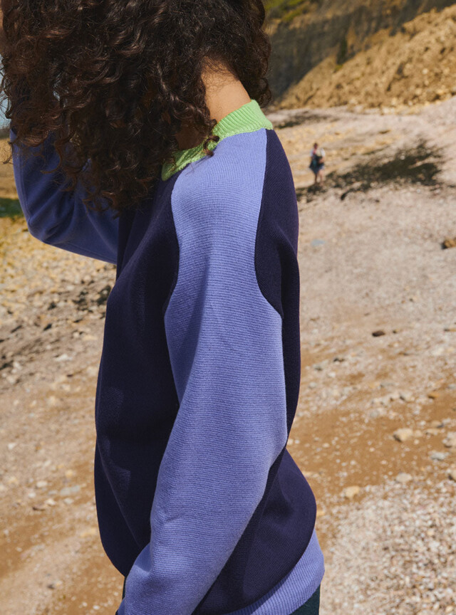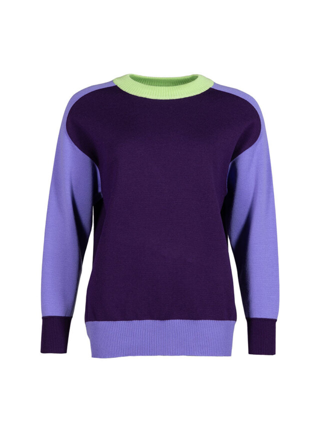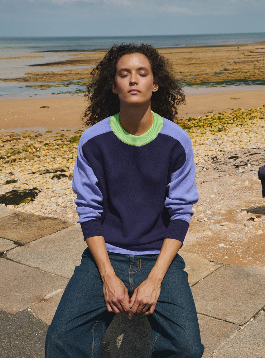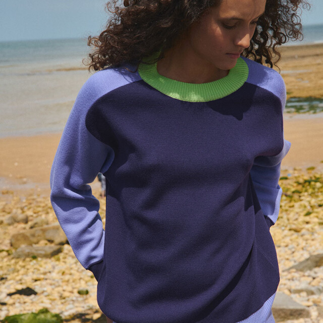 Le pull Aude en violet encrier mise sur un jeu de couleurs audacieux. Tricoté en maille jersey dans une coupe loose avec emmanchures marteau, il offre un tombé décontracté et moderne. Son col rond en côtes redoublées vert néon contraste avec le corps violet profond, tandis que les manches et bords-côtes en violet clair apportent une touche pop. Un pull vibrant qui donne instantanément de l’allure.