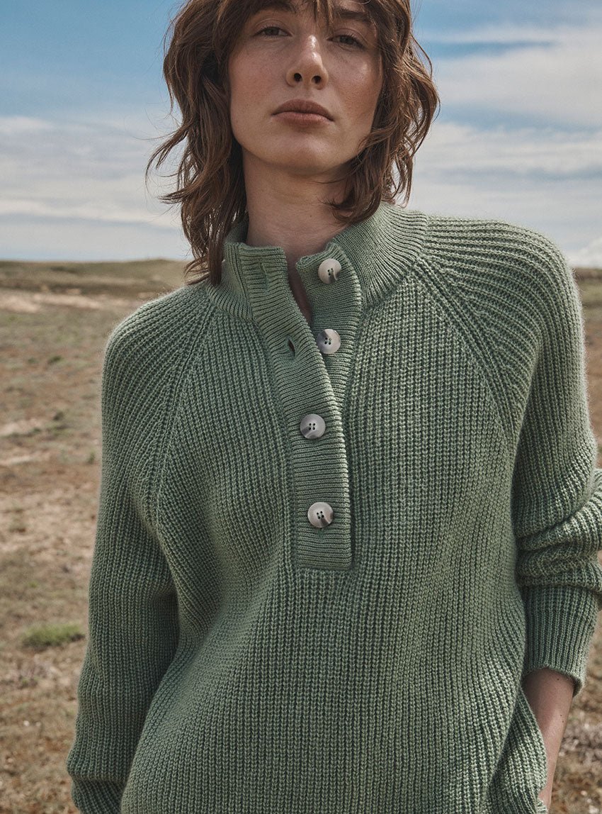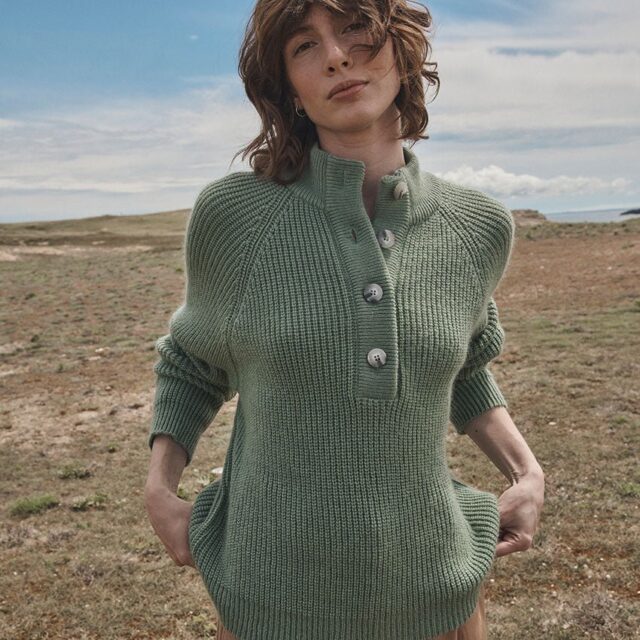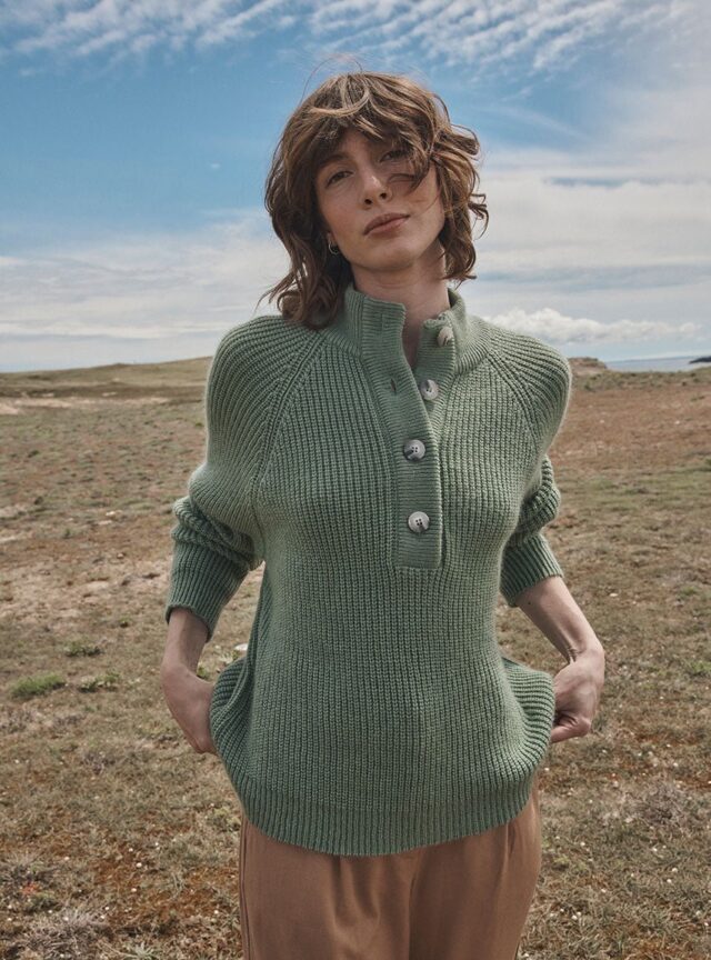 Le pull Aurélie se décline dans un vert sauge apaisant et naturel. Sa coupe légèrement loose en mohair et sa maille perlée lui confèrent une allure douce et enveloppante. Le col montant boutonné et les finitions en bords-côtes ajoutent une note chic et structurée. Une teinte subtile qui s’accorde aussi bien aux tons neutres qu’aux couleurs plus soutenues.