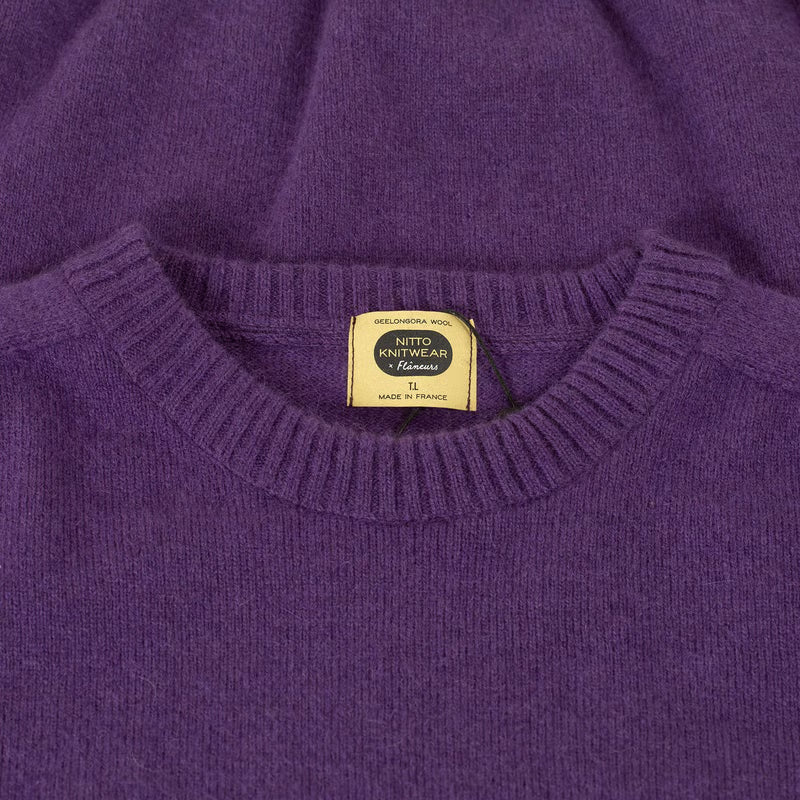 Collaboration Nitto Knitwear x Flâneurs autour de la laine Geelongora Née de la rencontre entre Nitto Knitwear et la boutique Flâneurs à Rennes, cette pièce rend hommage au savoir-faire et à la passion du vêtement bien fait. Tricoté en jauge 8 sur machine intégrale, le pull est réalisé d’un seul tenant, sans couture, pour une ligne pure et un tombé parfaitement naturel. Seul le col est ajouté manuellement. Le fil utilisé, le Geelongora, provient de la filature britannique Z. Hinchliffe & Sons. Il associe 75 % de laine d’agneau Geelong, fine et structurée, à 25 % d’angora à fibres courtes, choisi pour sa douceur et sa tenue exceptionnelle. Le résultat : une maille légère, gonflante et duveteuse, d’une douceur rare, aussi agréable à porter qu’à regarder. Une série limitée, disponible exclusivement chez Flâneurs et sur notre site. Fil : 75% laine d'agneau Geelong, 25% angora Tricotage intégral sans coutures, jauge 8 Finitions : col ajouté à la main Toucher : doux, léger, légèrement duveteux Poids : 410 grammes en taille L