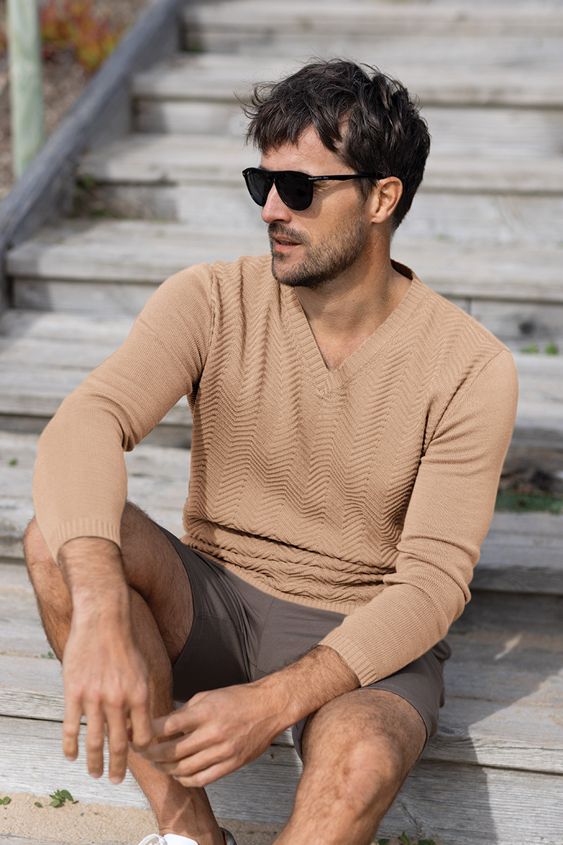 Pull col v en coton Made in France
