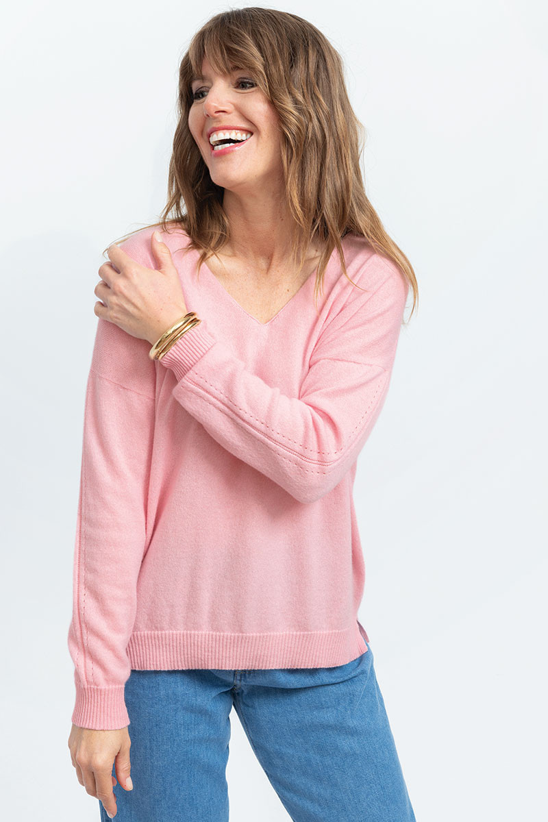 Pull col V laine et cachemire Made in France