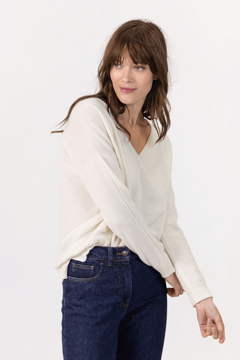 Explorez le monde des pulls enveloppants, de la maille douce au cachemire raffiné, trouvez votre style, tricotés en France.