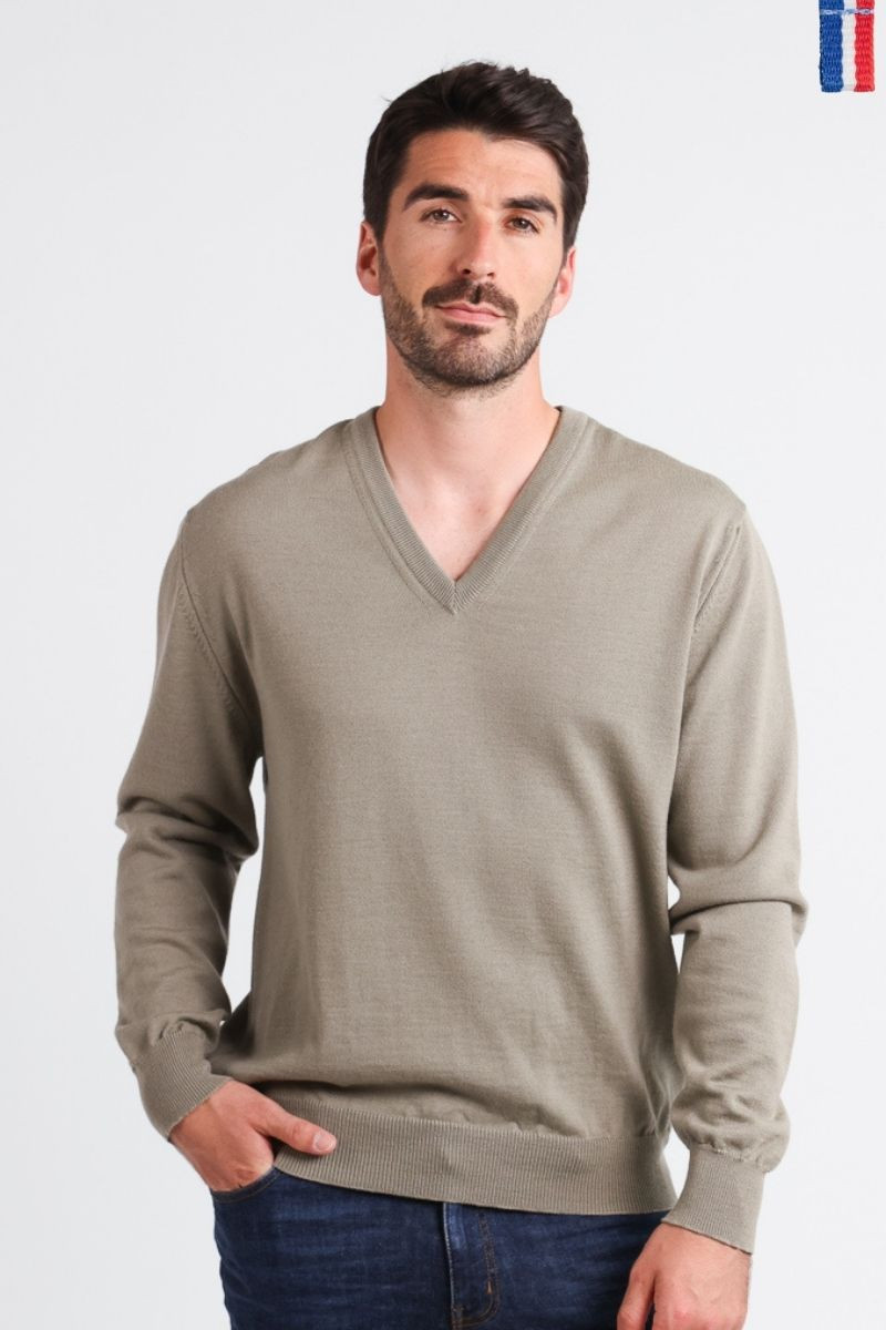 Pull col V laine mérinos · Camille