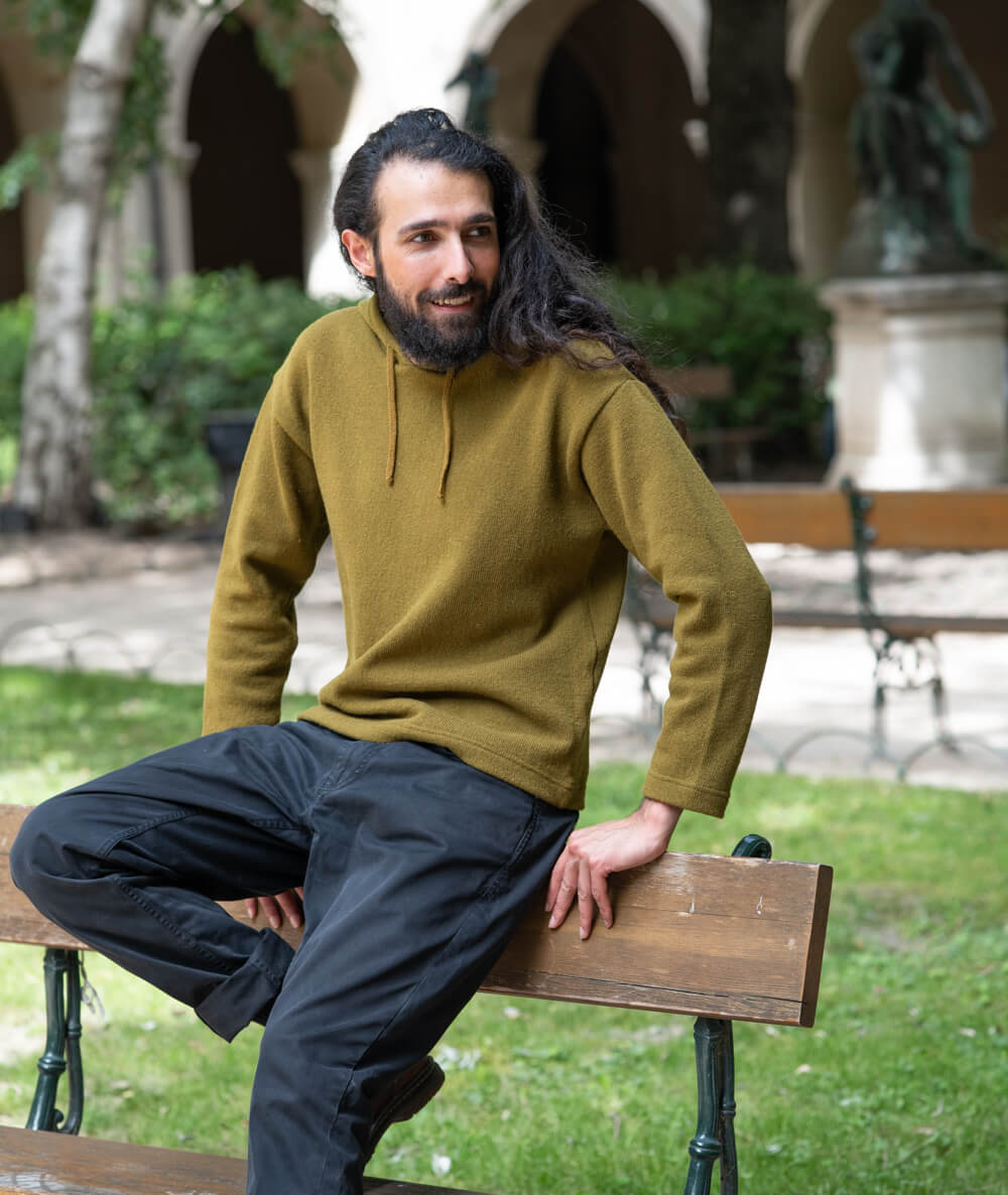 Adoptez le style et la douceur incomparables de notre pull à capuche 100% laine mérinos français.
