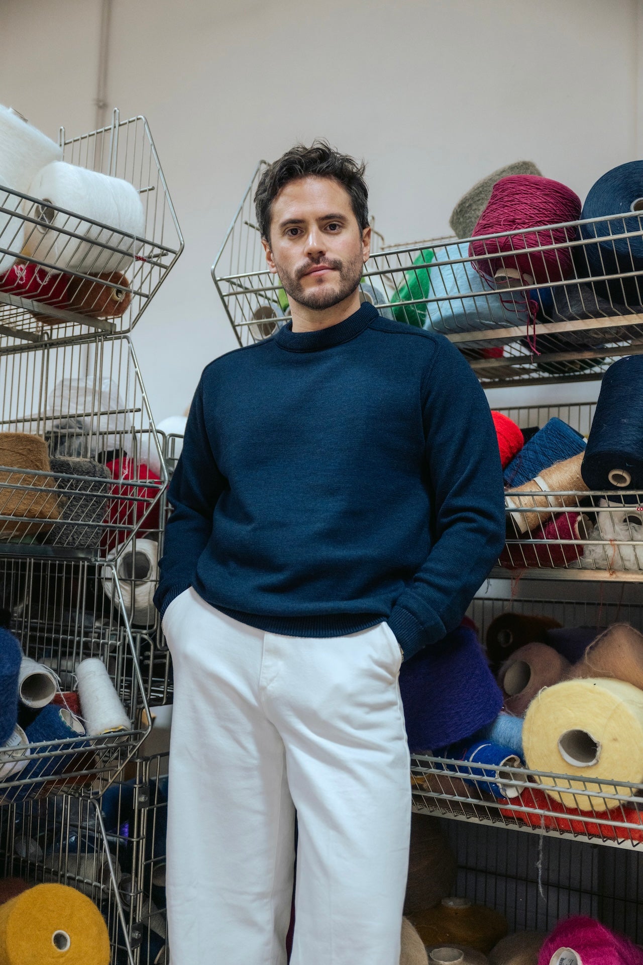 Nitto Knitwear propose des articles en maille pour homme, créée en 2022 par l'un des derniers fabricants de la région parisienne.