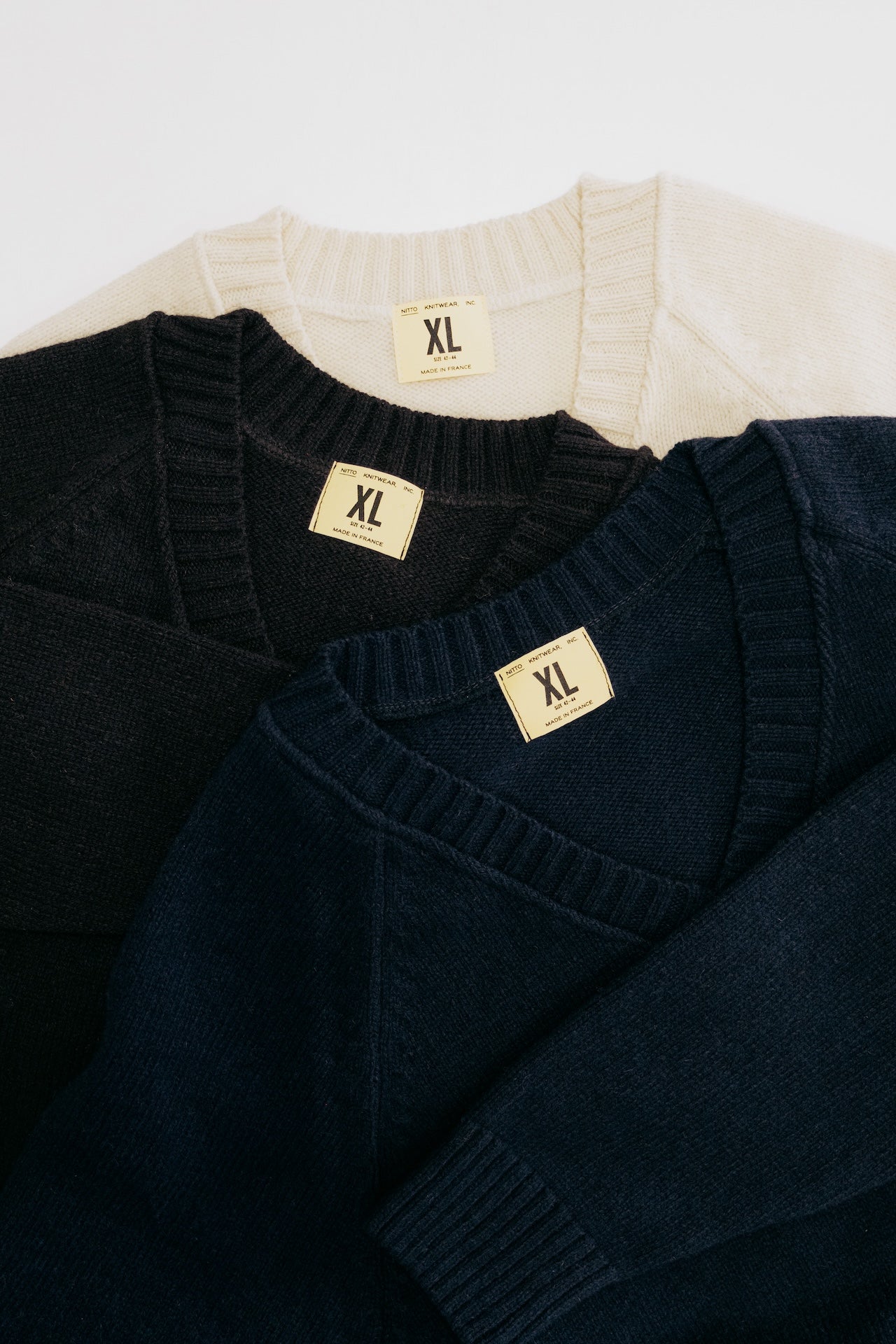 Nitto Knitwear propose des articles en maille pour homme, créée en 2022 par l'un des derniers fabricants de la région parisienne.