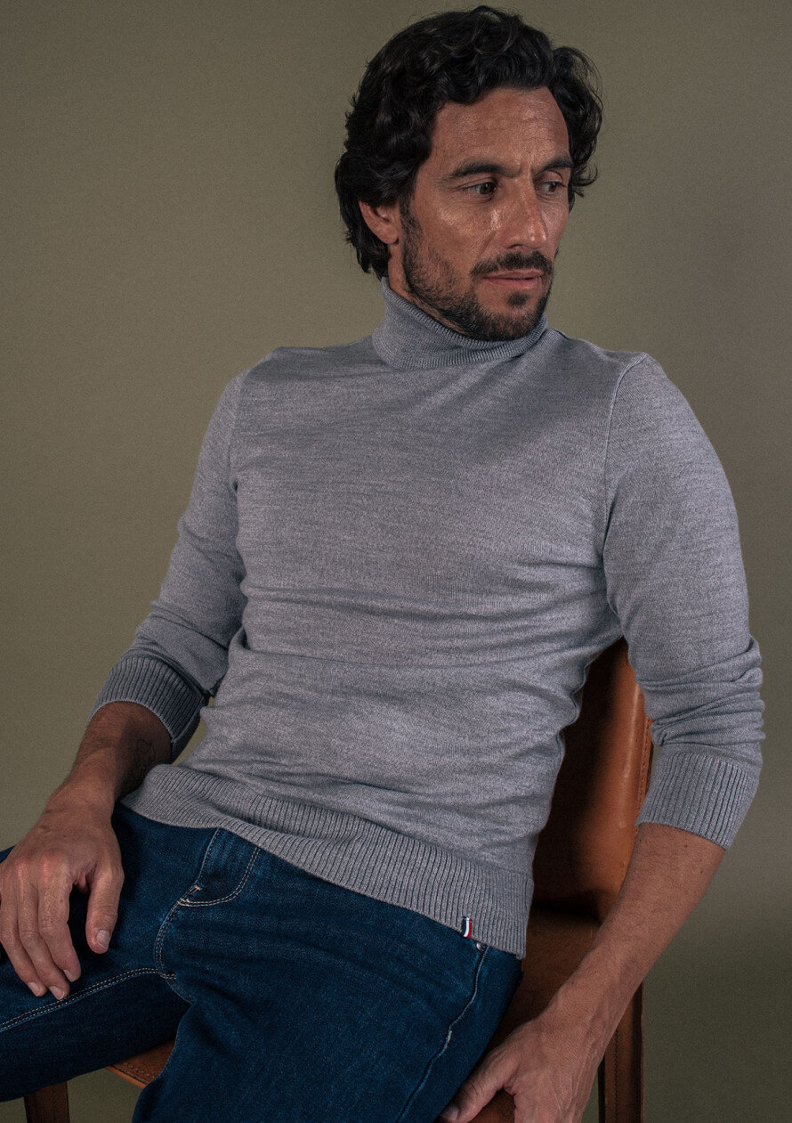 Le pull col roulé OXYGENE gris et sa fine maille 100% laine merinos vous gardera au chaud tout au long de la saison. Près du corps, il se portera sans encombre sous une veste ou un cardigan.