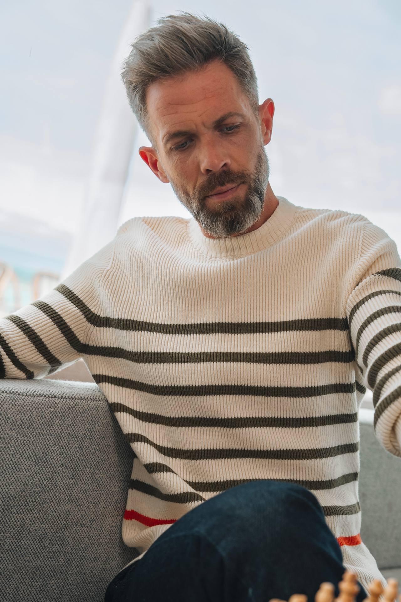 Inspiré des pulls marins, le Chevrets rayé modernise le classique avec un jeu de rayures équilibré et une coupe parfaitement ajustée. Tricoté en laine mérinos ultra-fine, il garantit un confort inégalé tout en apportant une touche graphique et dynamique à vos tenues. Idéal pour un look casual-chic, il s’adapte aussi bien aux journées en bord de mer qu’aux soirées en ville. Un essentiel du vestiaire contemporain. Composition : 100% laine Fabriqué à Saint-Malo chez 3D-TEX