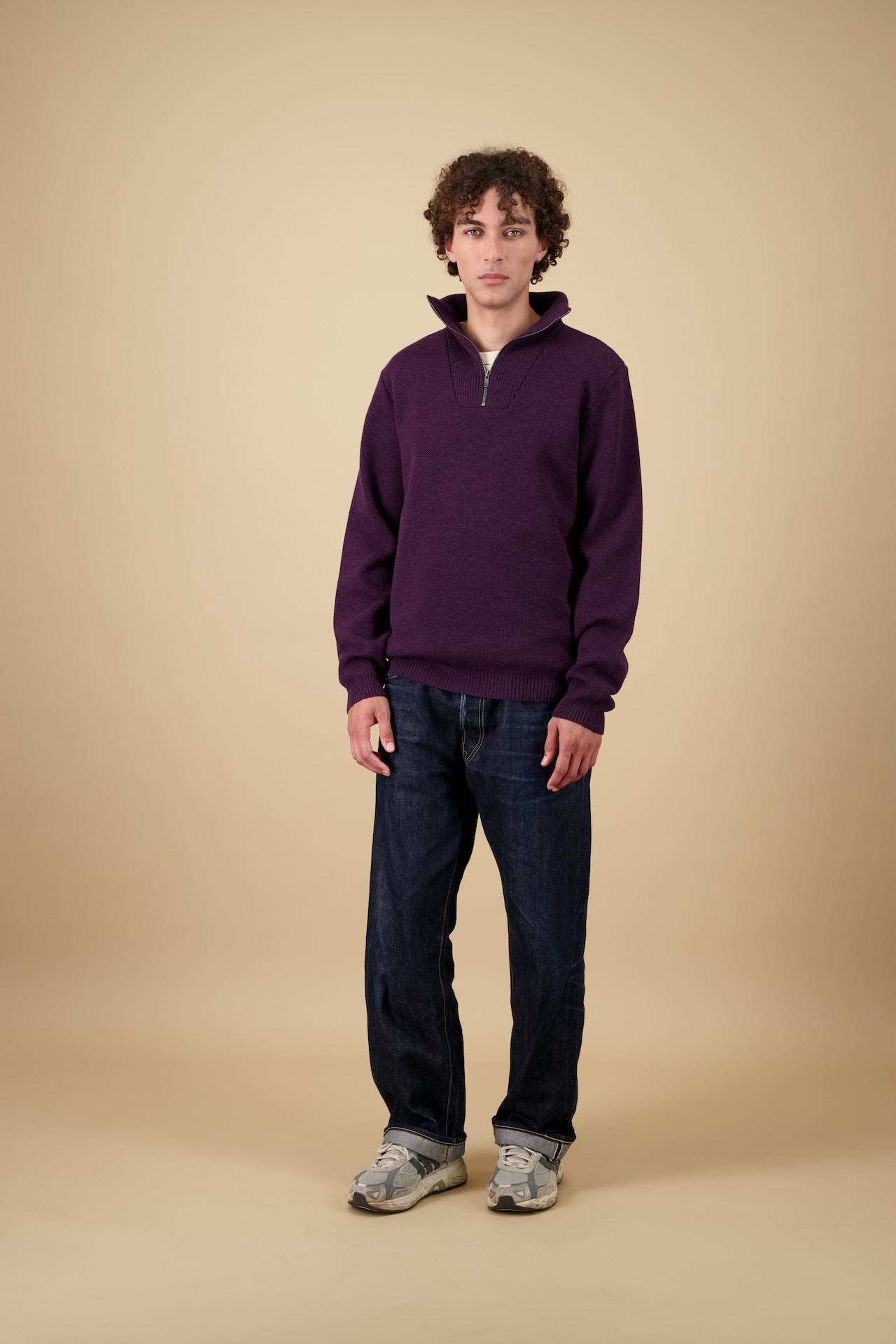 C’est le pull Youri avec un col camionneur. Un col qui monte le long de votre cou que vous allez ouvrir et fermer à l’aide d’un zip d’une qualité supérieure provenant d’un des principaux fabriquant du monde de fermetures éclairs (YKK – qualité excella). Ce zip a été fait et cousu sur la pièce dans le but de ne pas vous gêner, vous ne le sentirez pas. Un peu d’histoire : dans les années 1920, le pull camionneur était l’allié des chauffeurs routiers et des ouvriers. Pratique et fonctionnel, son col montant les protégeait du froid, tandis que le zip permettait d’ouvrir ou de refermer le col sans retirer le pull - idéal pour les changements de température entre les espaces intérieurs et extérieurs. Fil 100% laine mérinos extra-fine (19,5 microns) Tricotage maille piquée, bien serrée (jauge 14) Poignets et bas de pièces tricotés en côtes 2 x 2 Toucher doux et confortable Poids : 850 grammes